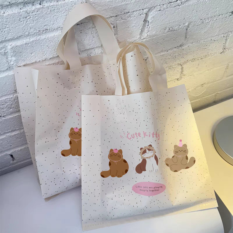 신선한 잎 선물 포장 가방 만화 의류 매장 가방 여성 의류 아동 의류 플라스틱 핸드백 인쇄 로고스토어 가기