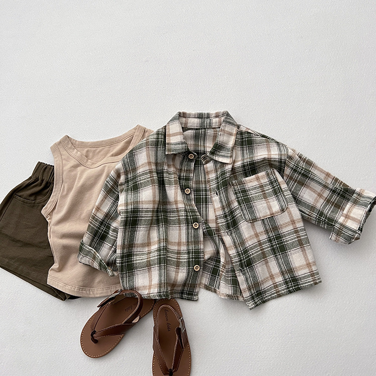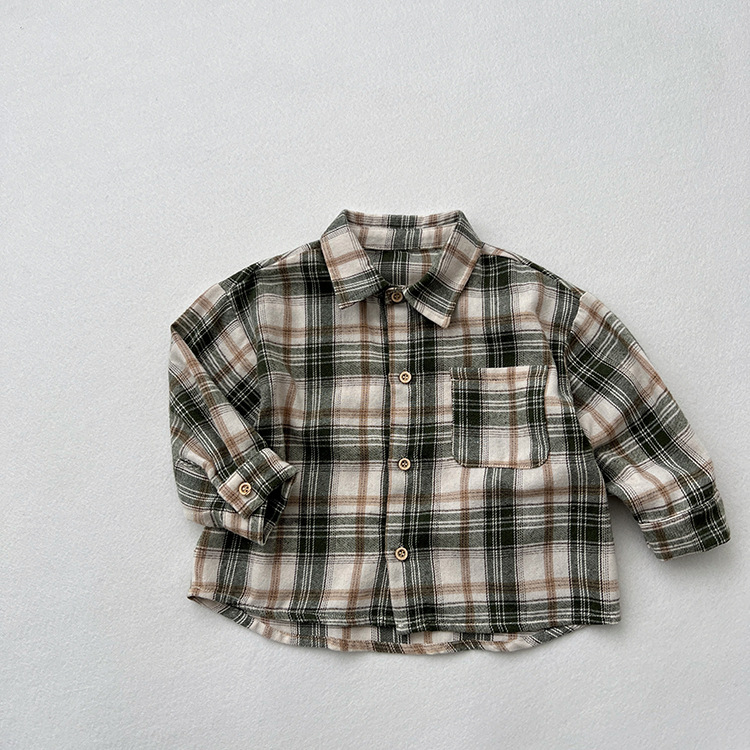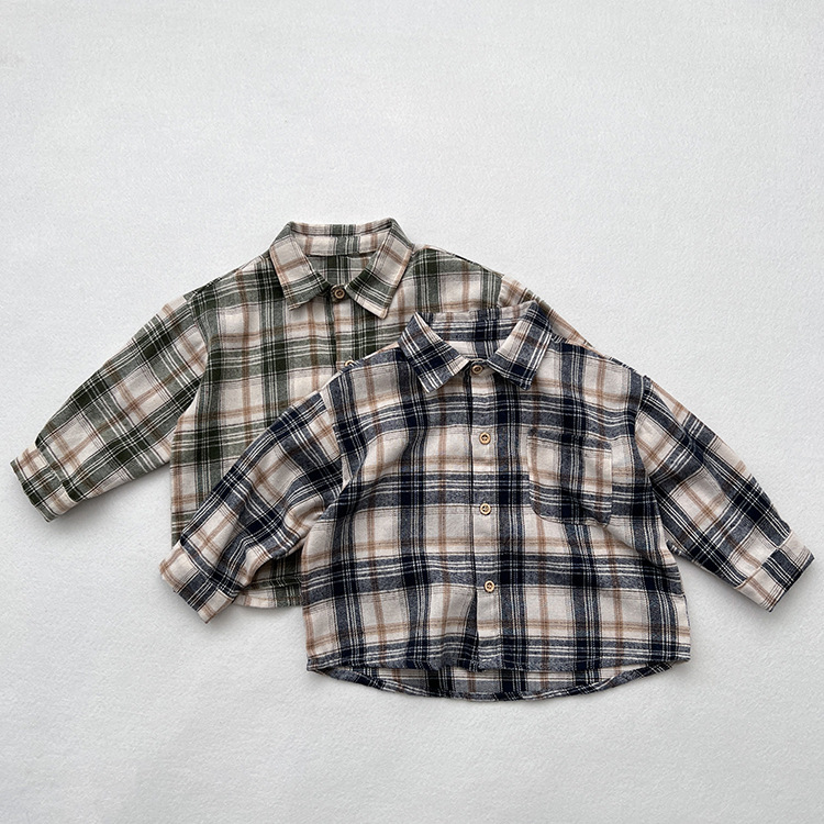 어린이 복고풍 격자 무늬 셔츠 봄과 가을 새로운 아기의 서양 긴 소매 가디건 남성과 여성의 일본과 한국 스타일 스크럽 셔츠 트렌디