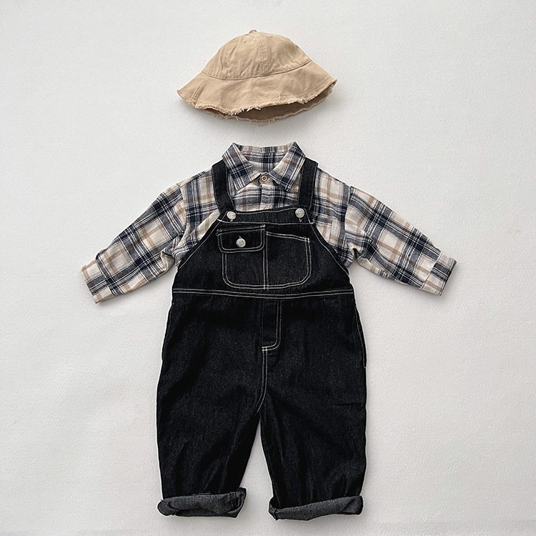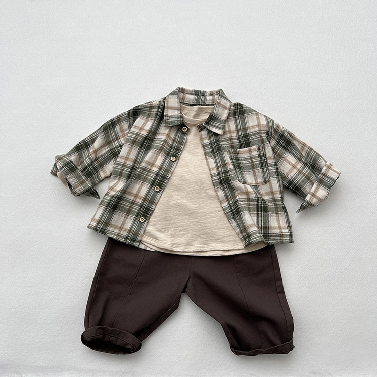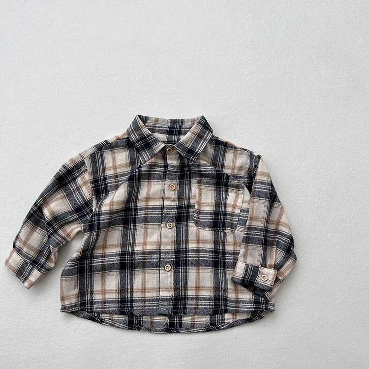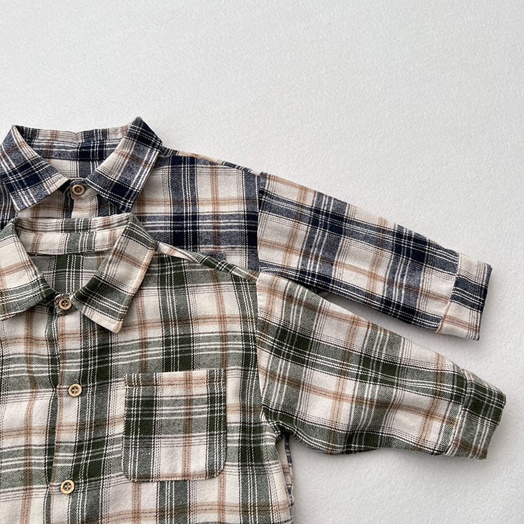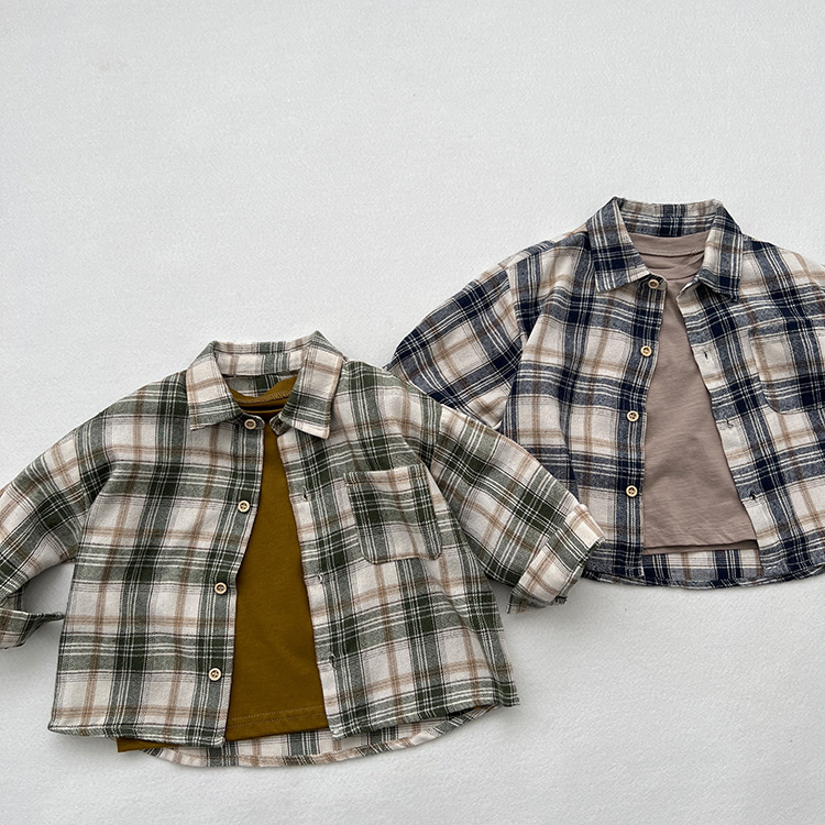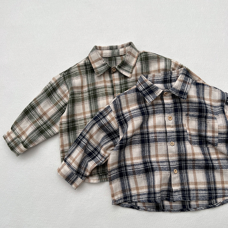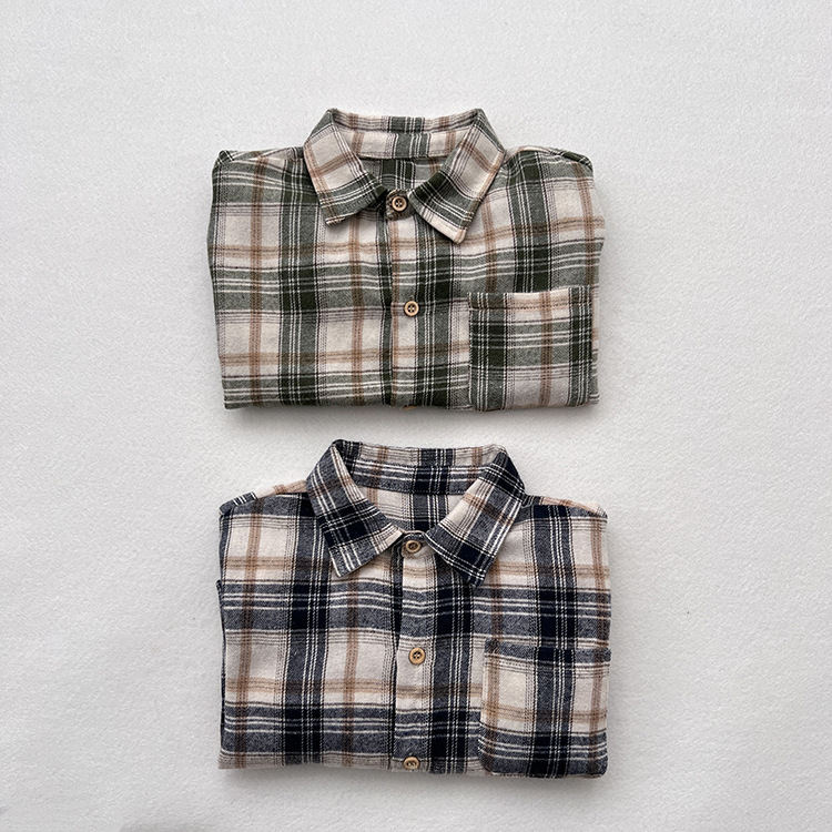 어린이 복고풍 격자 무늬 셔츠 봄과 가을 새로운 아기의 서양 긴 소매 가디건 남성과 여성의 일본과 한국 스타일 스크럽 셔츠 트렌디스토어 가기