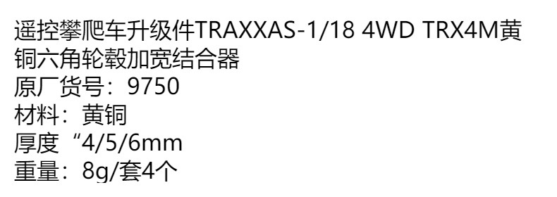 원격 제어 등반 자동차 업그레이드 TRAXXAS-1/18 4WD TRX4M 황동 육각 허브 확장 커플러를스토어 가기