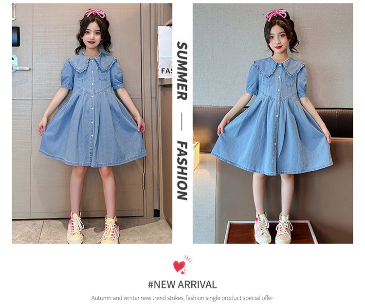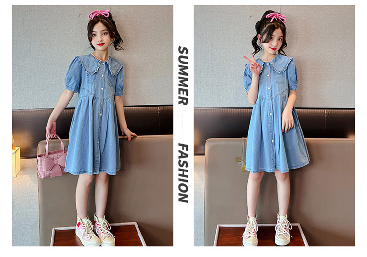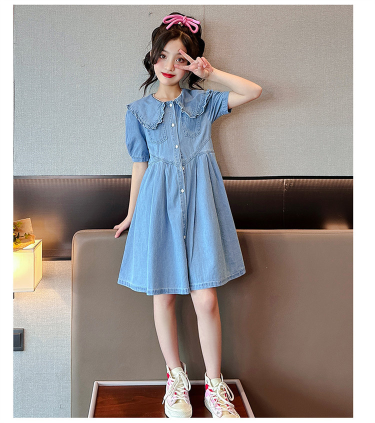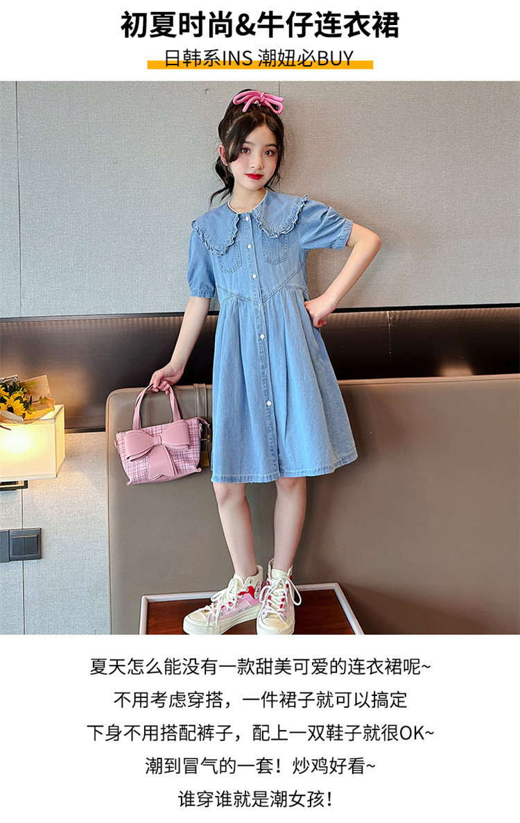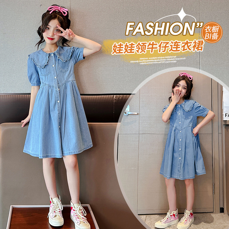여자 데님 원피스 여름 2023 새로운 스타일 여름 어린이 공주 원피스 큰 어린이 여름 소녀의 원피스스토어 가기
