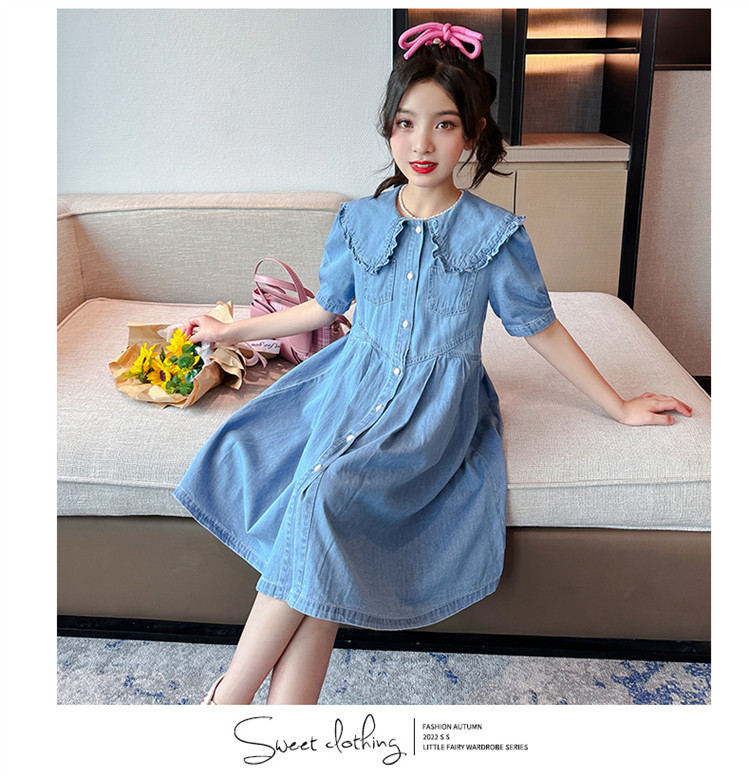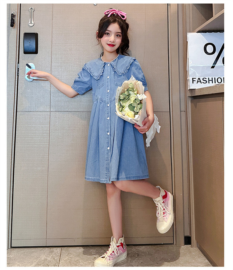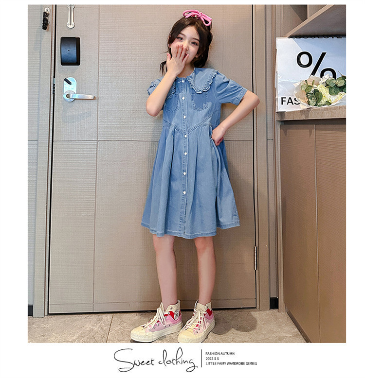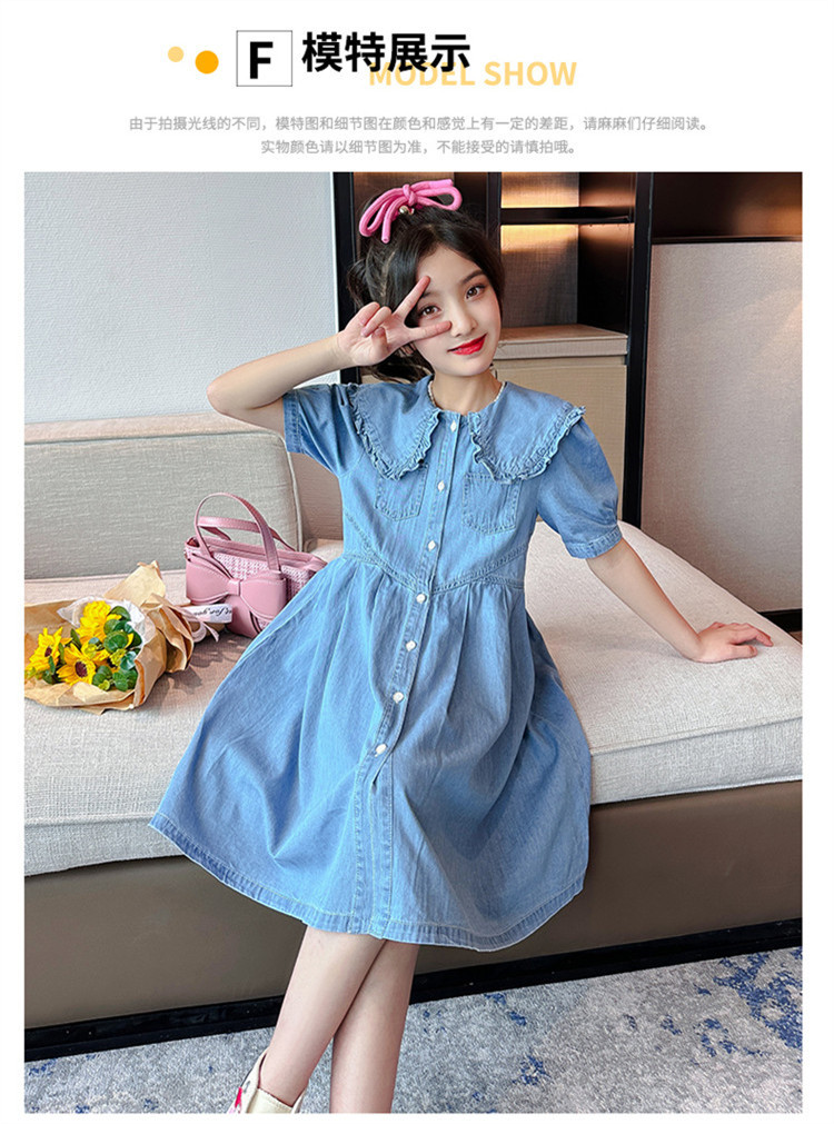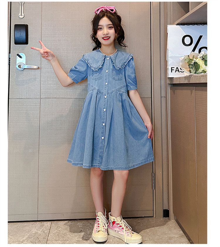 여자 데님 원피스 여름 2023 새로운 스타일 여름 어린이 공주 원피스 큰 어린이 여름 소녀의 원피스스토어 가기