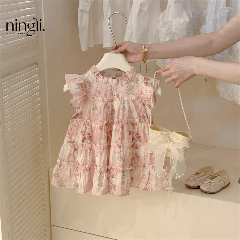 라임 소녀 원피스 여름 2025 새로운 한국식 어린이 치마 여름 꽃 공주 치마 조수스토어 가기