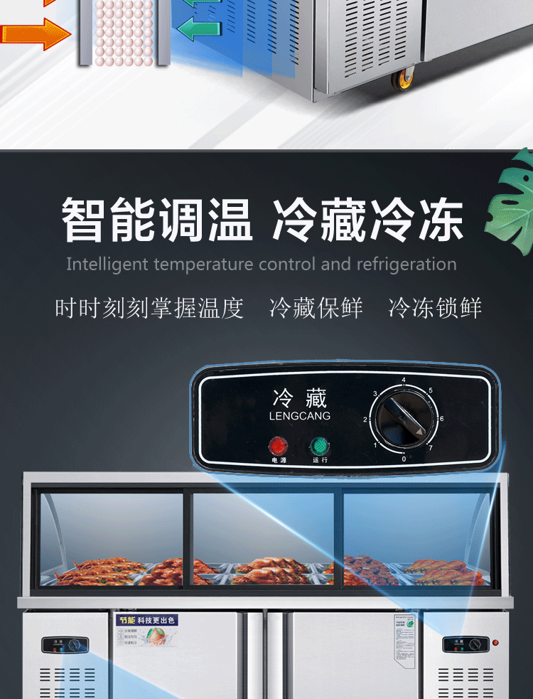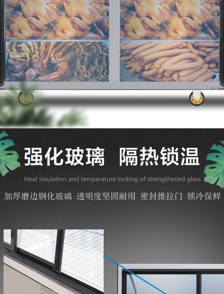 이중 온도 조리 식품 디스플레이 캐비닛 상업용 슈퍼마켓 오리 목 절인 고기 보존 캐비닛 차가운 요리 바베큐 냉장고 유리 냉동고스토어 가기