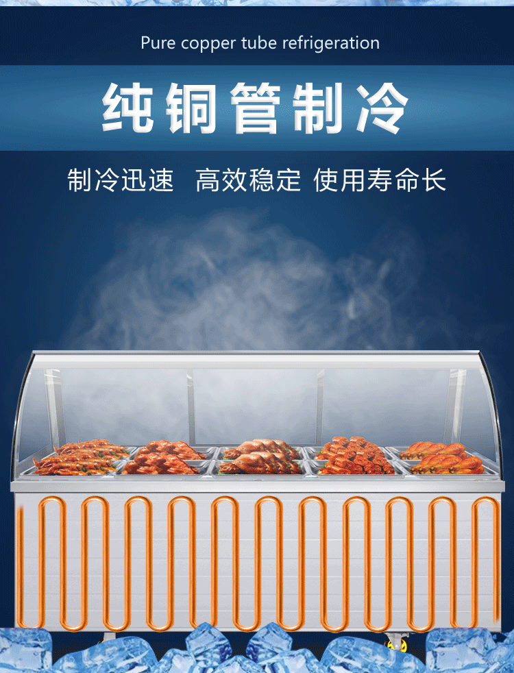 이중 온도 조리 식품 디스플레이 캐비닛 상업용 슈퍼마켓 오리 목 절인 고기 보존 캐비닛 차가운 요리 바베큐 냉장고 유리 냉동고