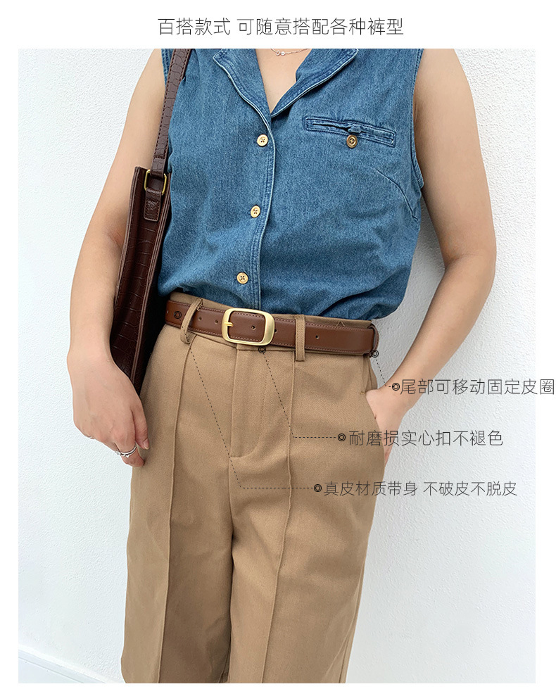 여성용 정품 가죽 벨트 심플 올 매치 한국 스타일 2023 여름 새로운 스타일 여성용 스트레이트 청바지 벨트스토어 가기