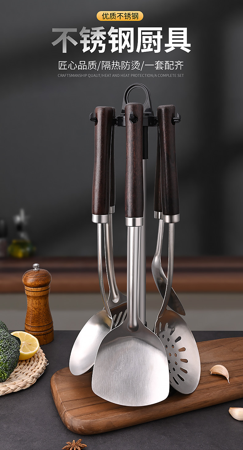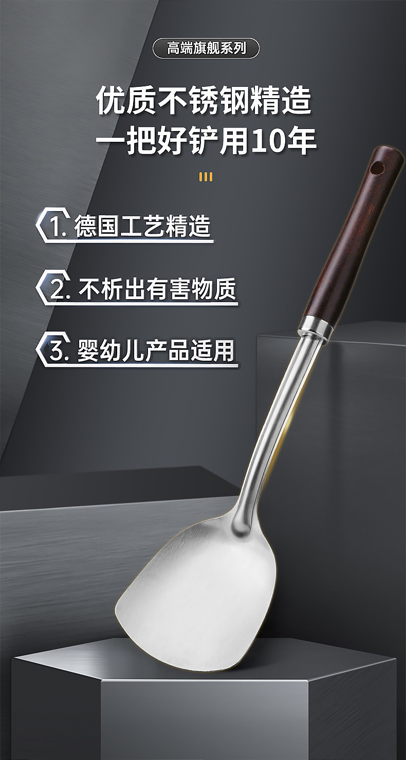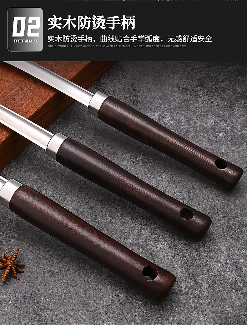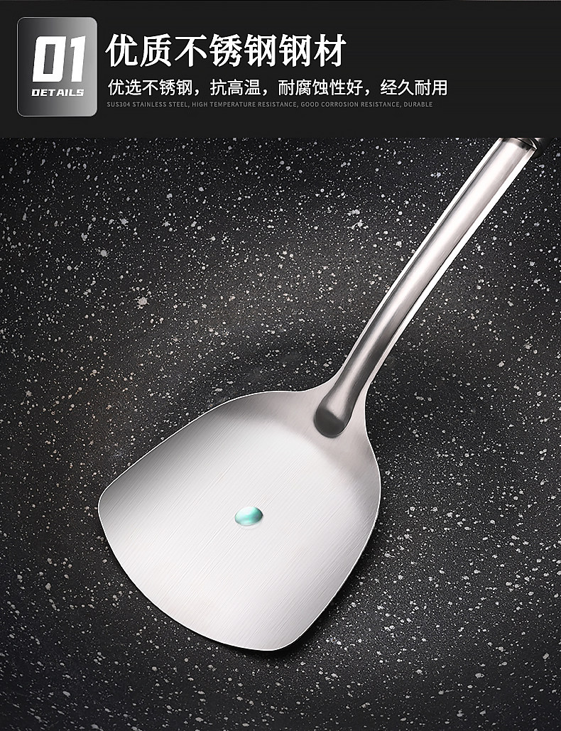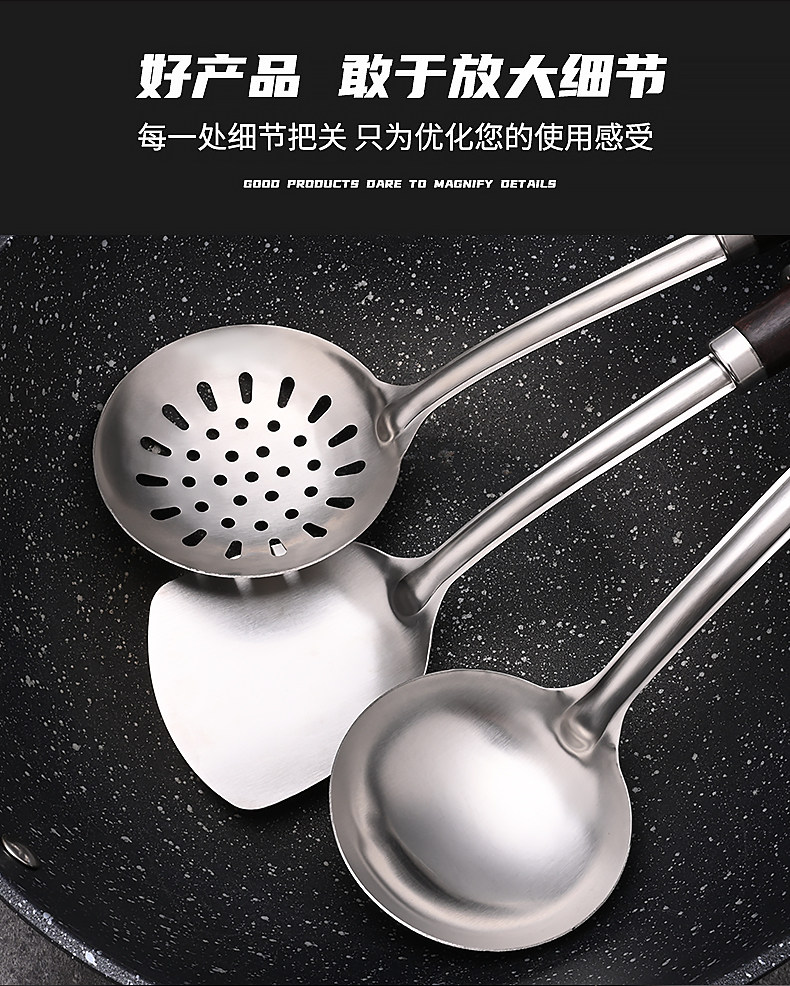 도매 외국 무역 두꺼운 주걱 가정용 스테인레스 주방 볶음 철 삽 주방 용품 세트 볶음 스푼 머리카락의 세대