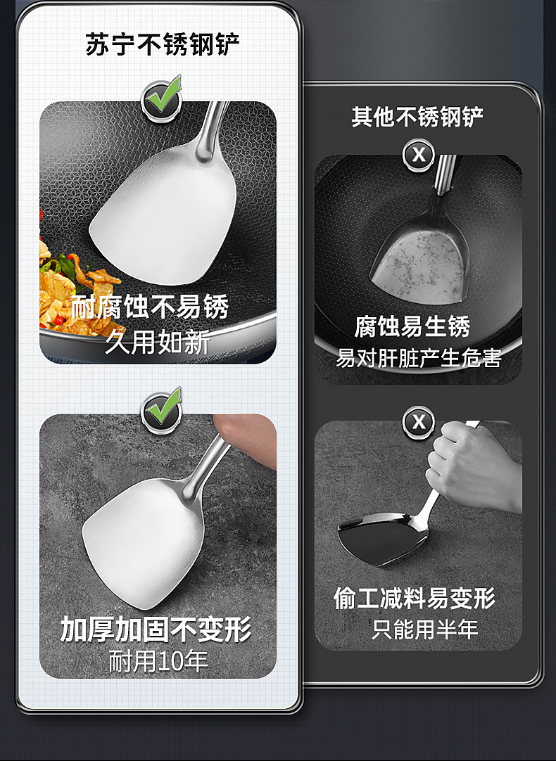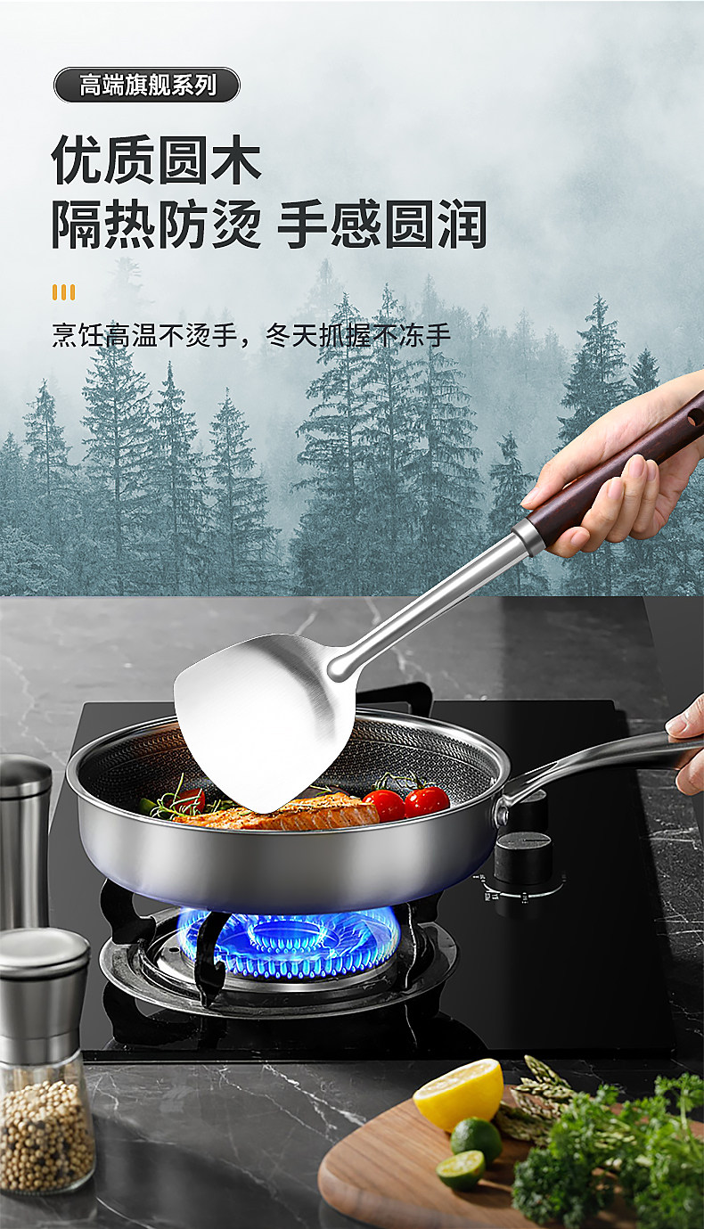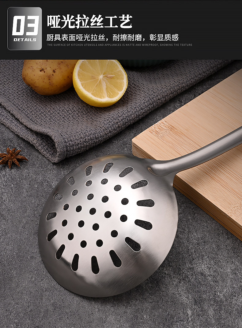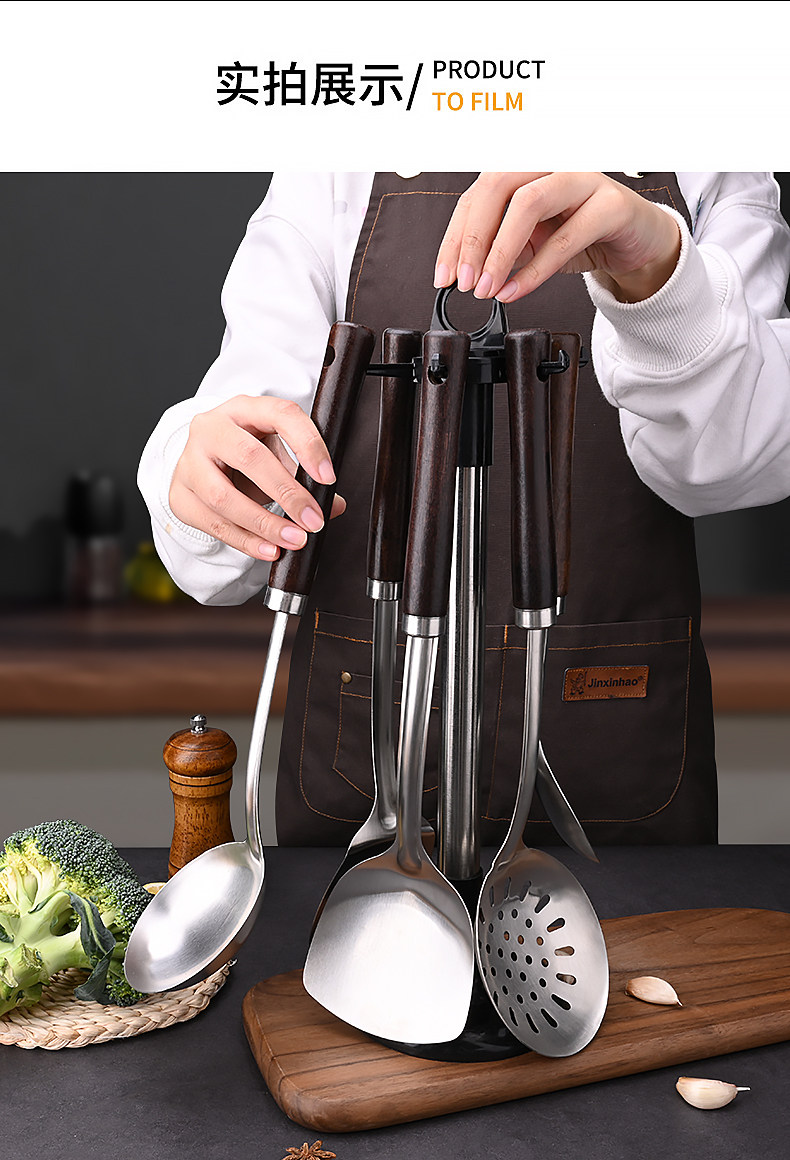 도매 외국 무역 두꺼운 주걱 가정용 스테인레스 주방 볶음 철 삽 주방 용품 세트 볶음 스푼 머리카락의 세대