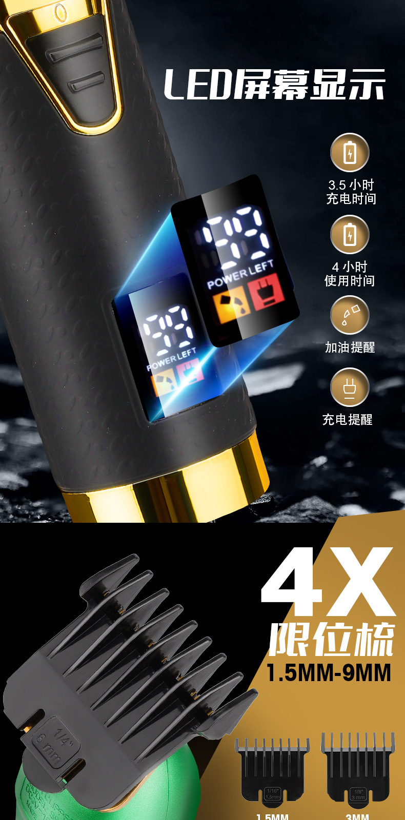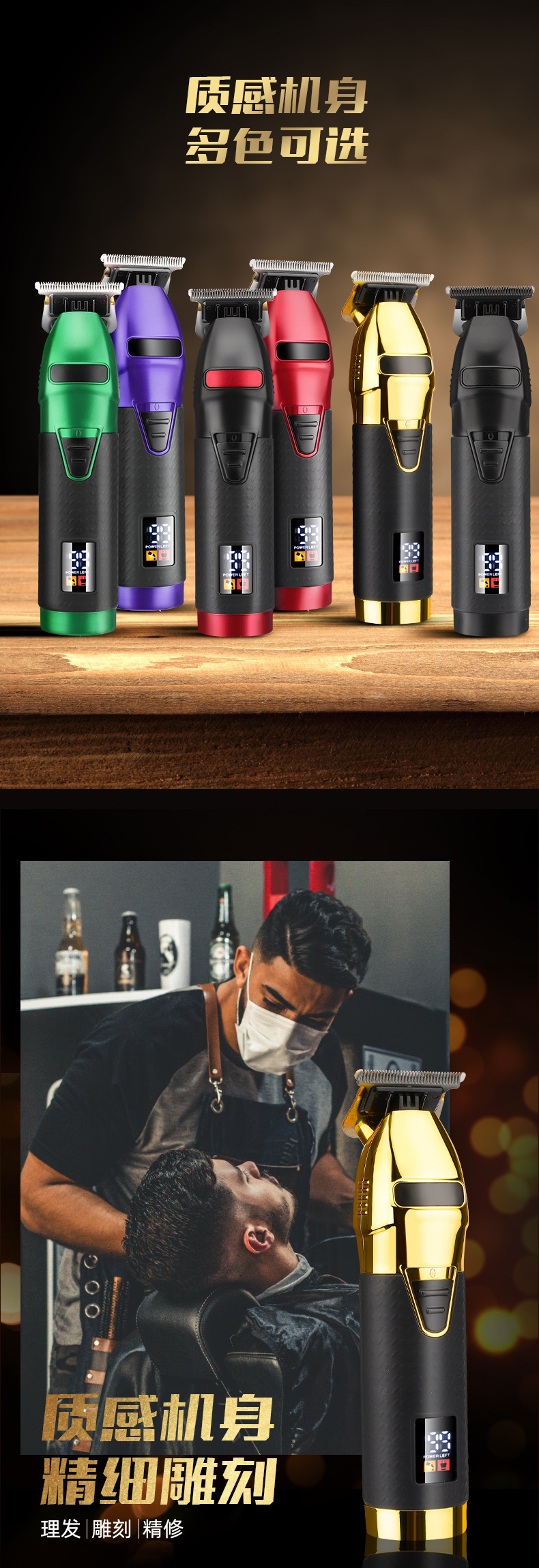 국경 간 새로운 전문 헤어 클리퍼 디지털 디스플레이 고성능 헤어 클리퍼 면도기 오일 헤드 조각 가정용 전기 클리퍼