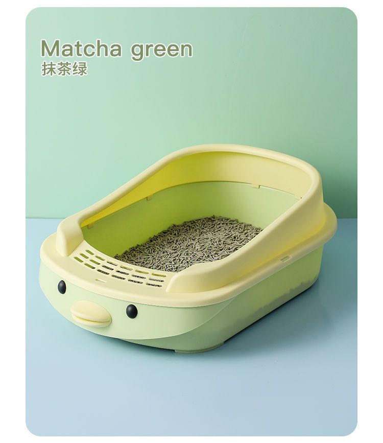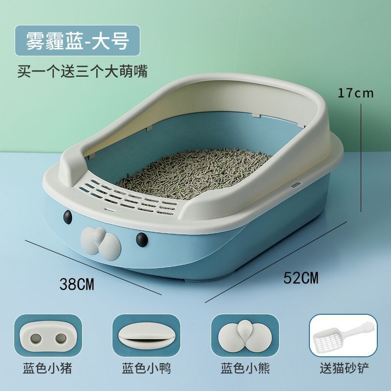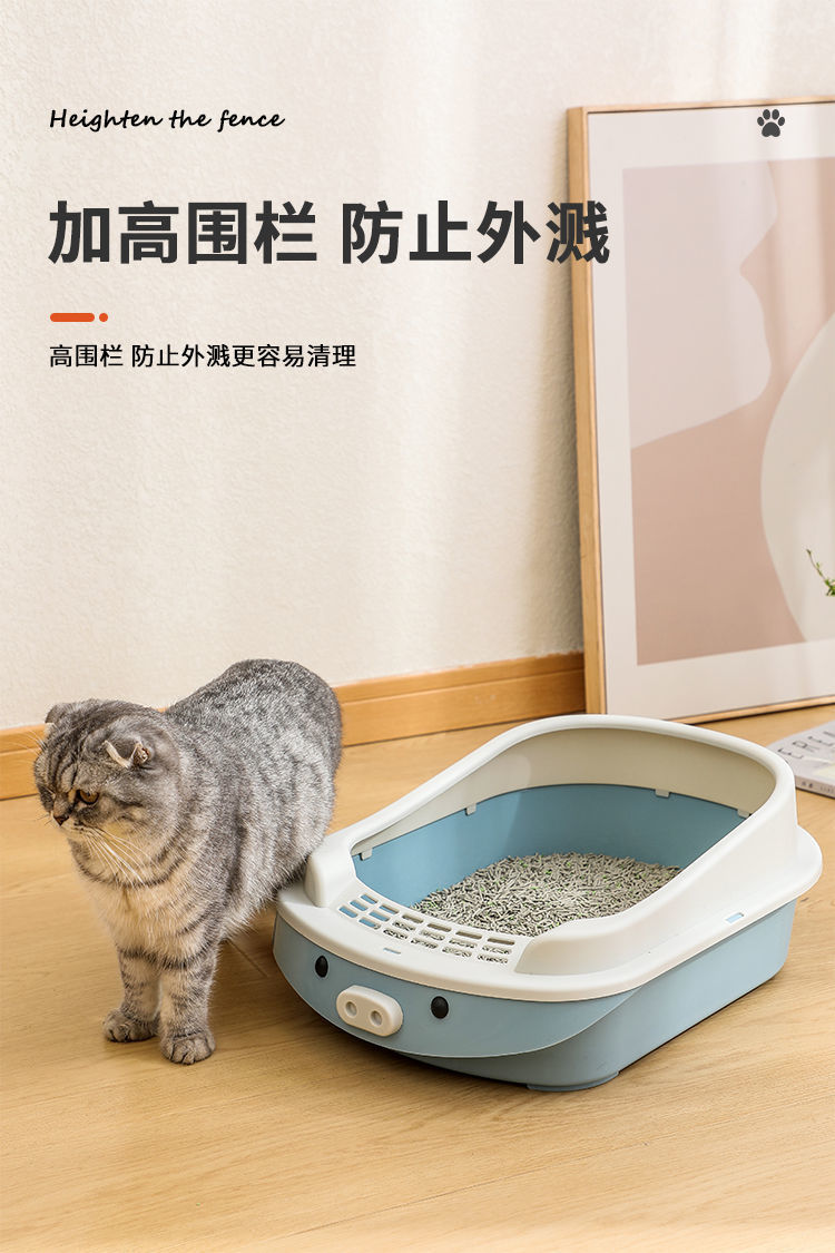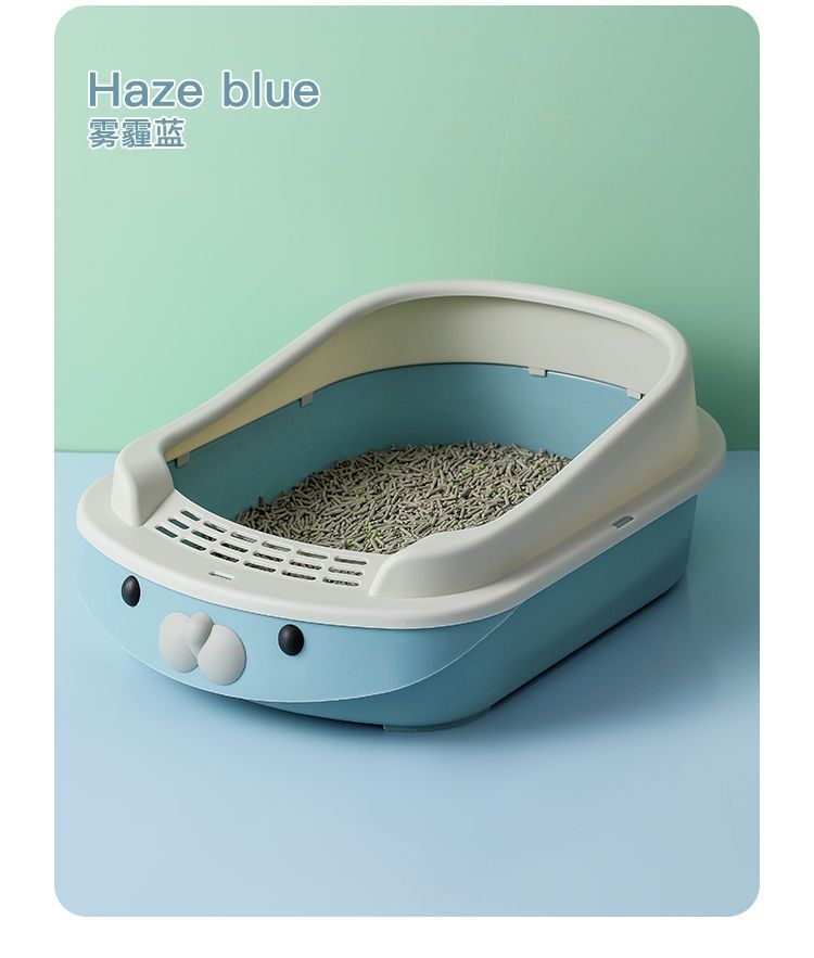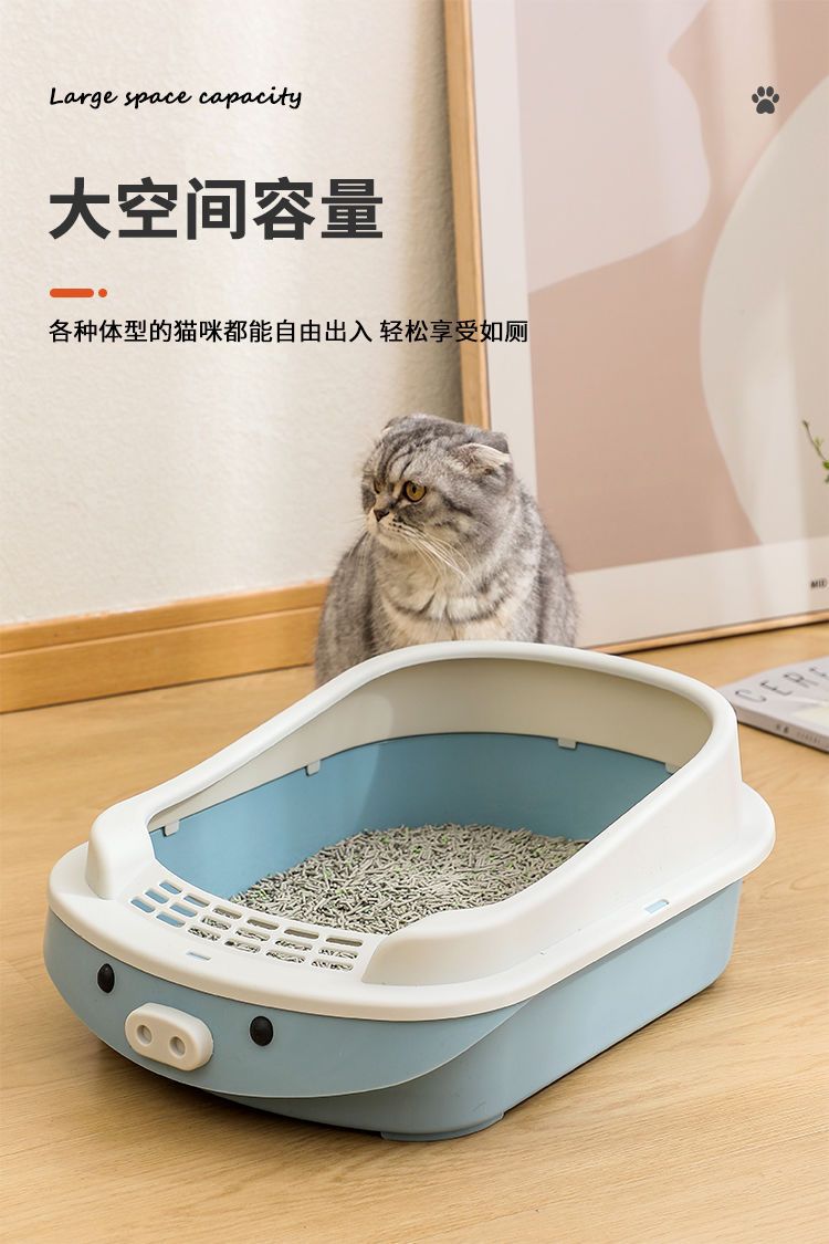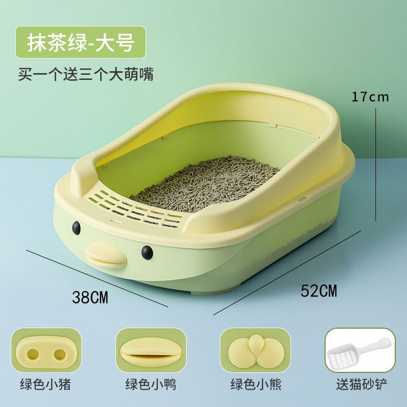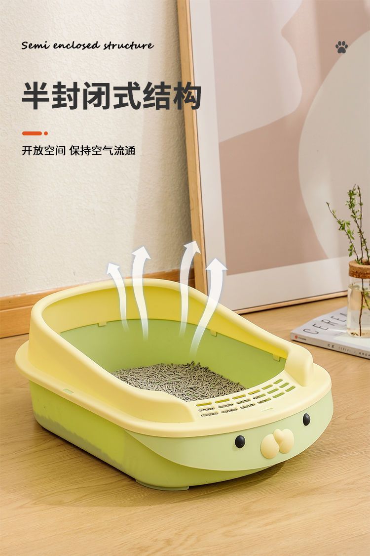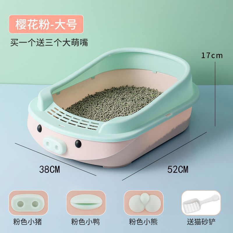 새로운 만화 고양이 쓰레기통 반 폐쇄 고양이 화장실 대형 단층 탈취제 애완 동물 용품이있는 쓰레기 방지 상자스토어 가기