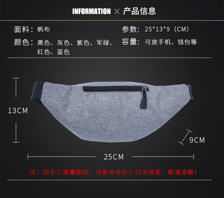 새로운 남자의 허리 가방 여자의 야외 등산 가방 패션 방수 캐주얼 대용량 휴대 전화 가방 캔버스 사첼 배치