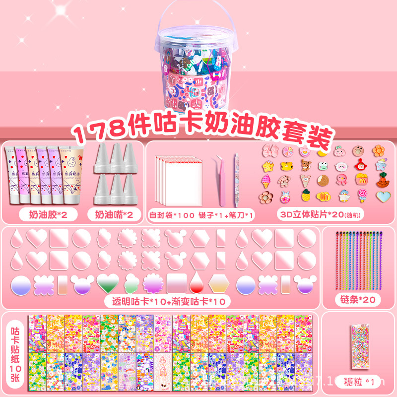 크림 접착제 goo 카드 스티커 큰 세트 소녀 DIY 수제 장난감 재료 가방 풀 세트 goo Ka 보관 상자 도매