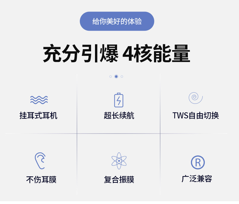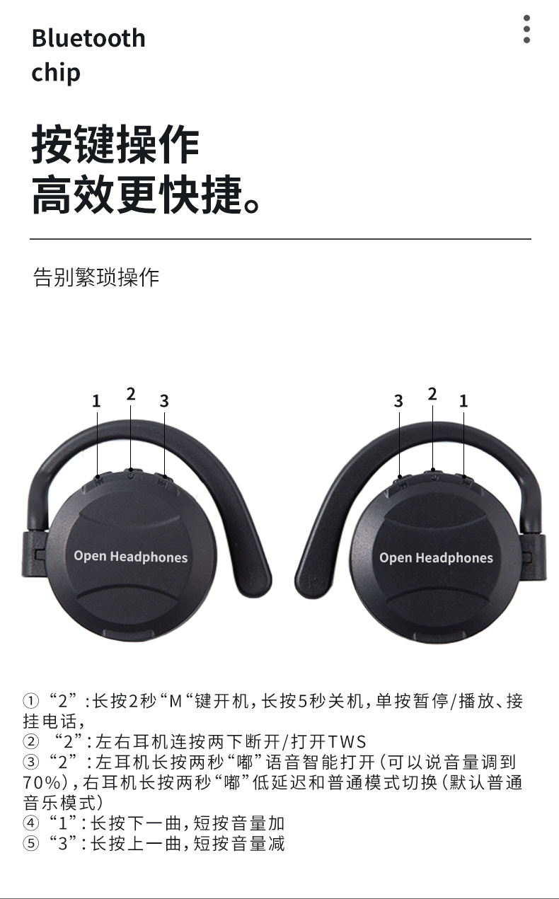 *开放式不入耳,不伤耳膜,久戴不痛;