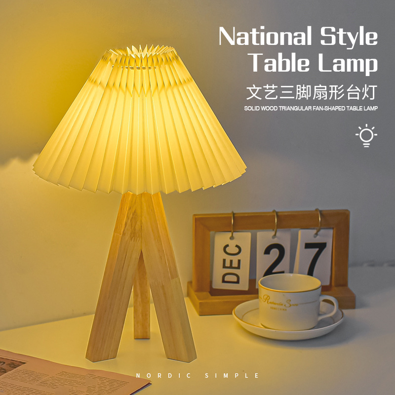 북유럽 레트로 주름 테이블 램프 장식 침실 침실 램프 솔리드 우드 인터넷 유명 인사 원격 제어 야간 조명 LED 대기 램프스토어 가기