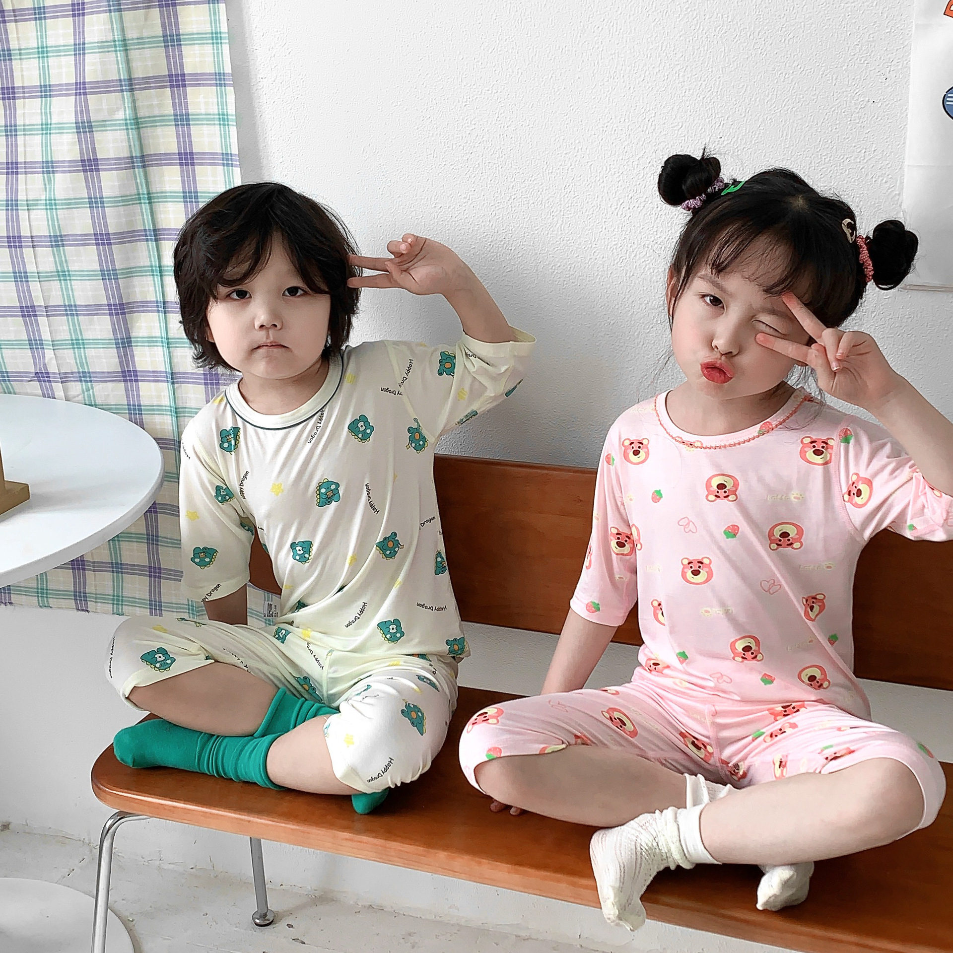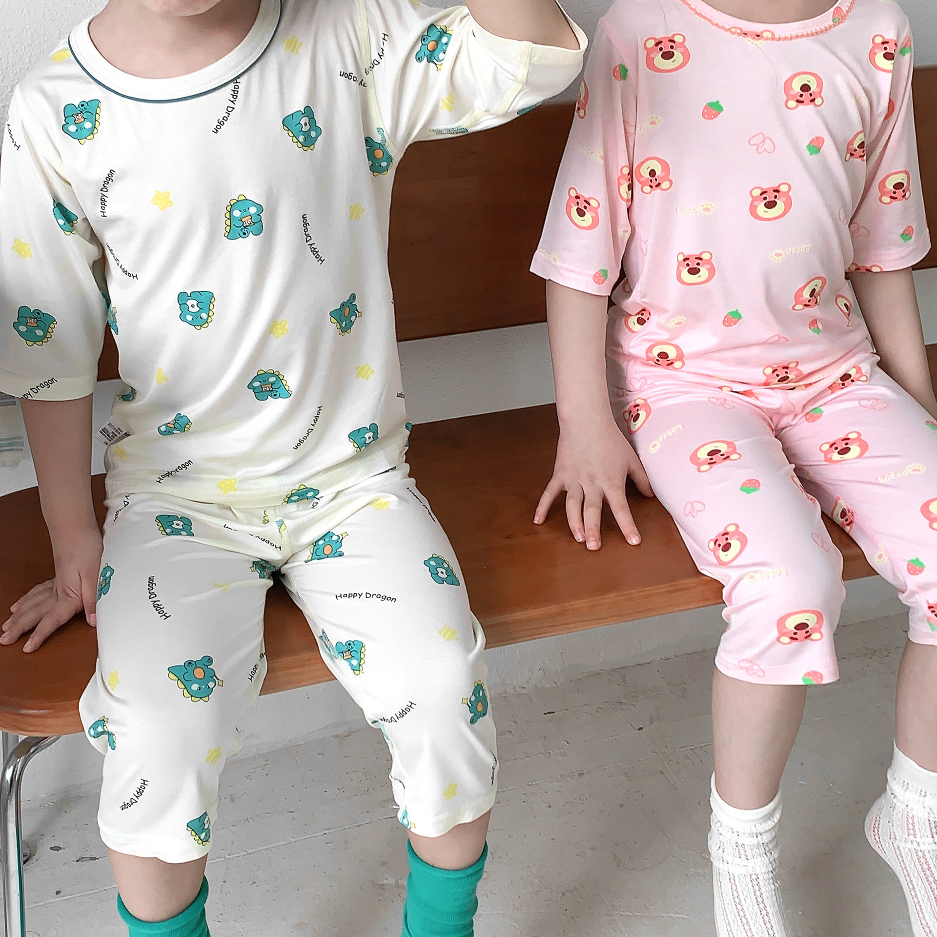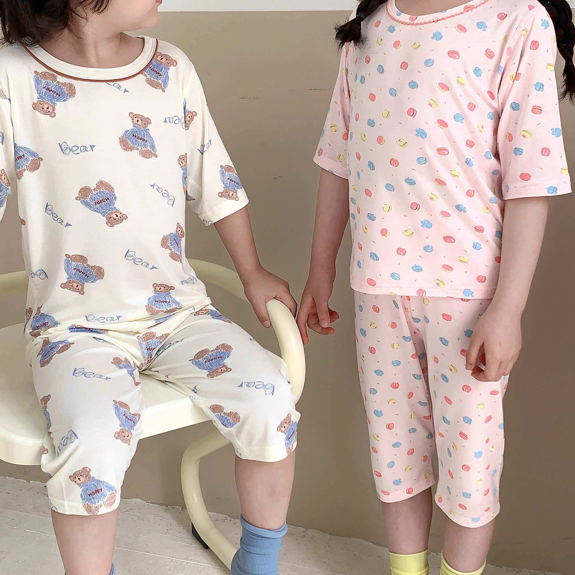 어린이 Yasser 가정 의류 소년 소녀 뜨거운 만화 7 점 소매 세트 아기 여름 얇은 에어컨 옷스토어 가기