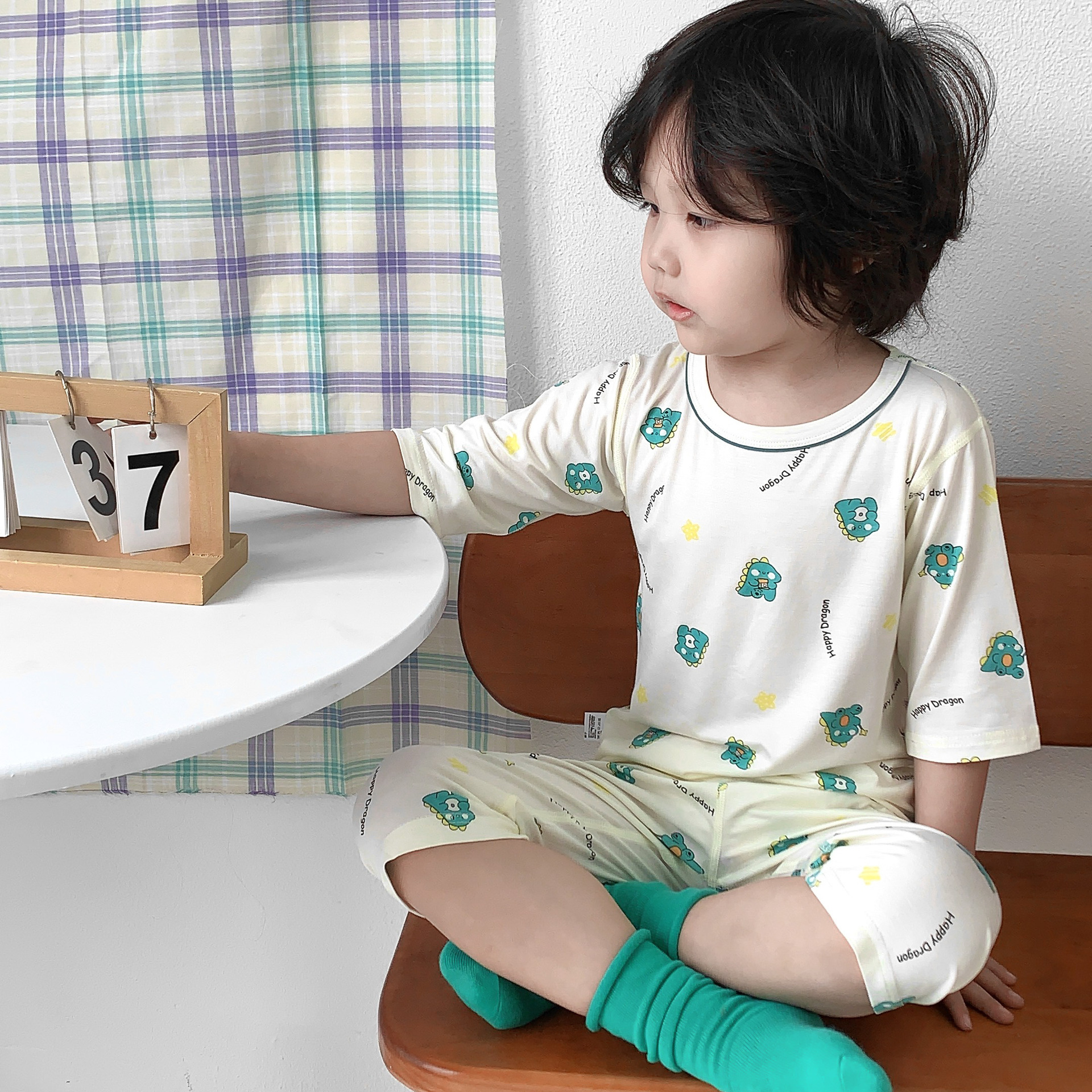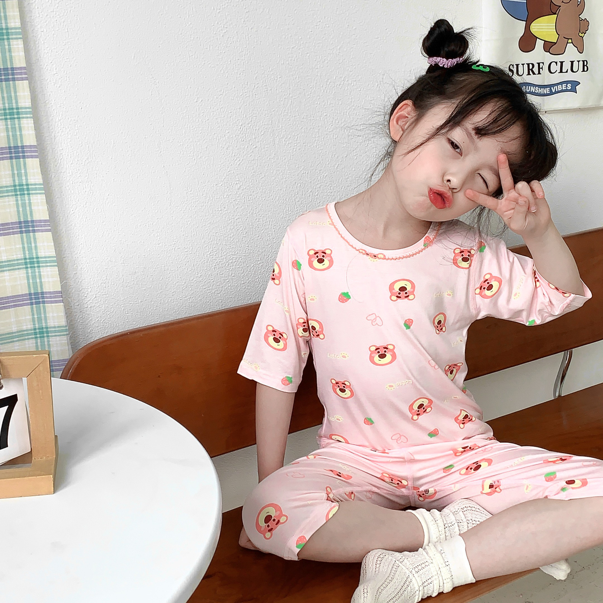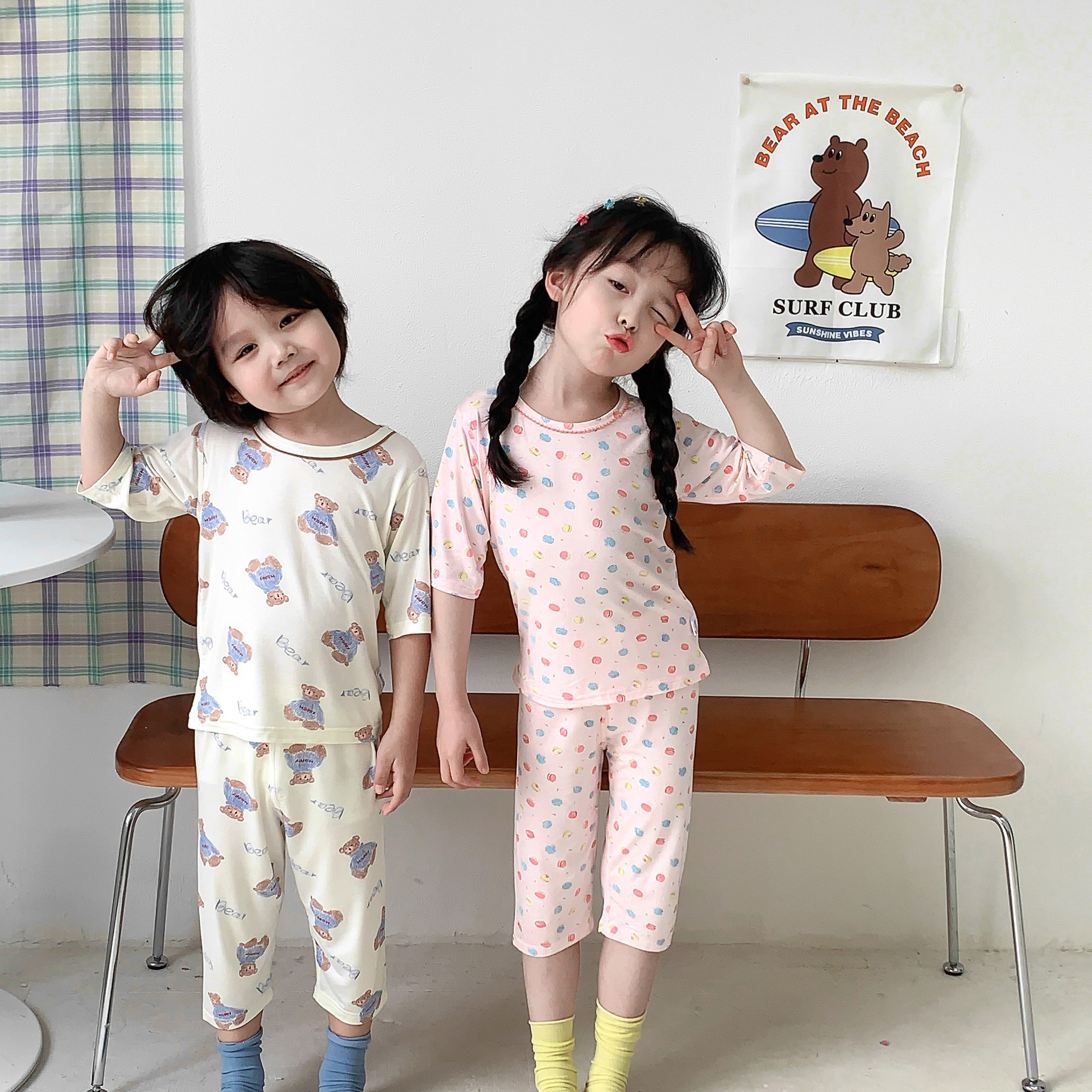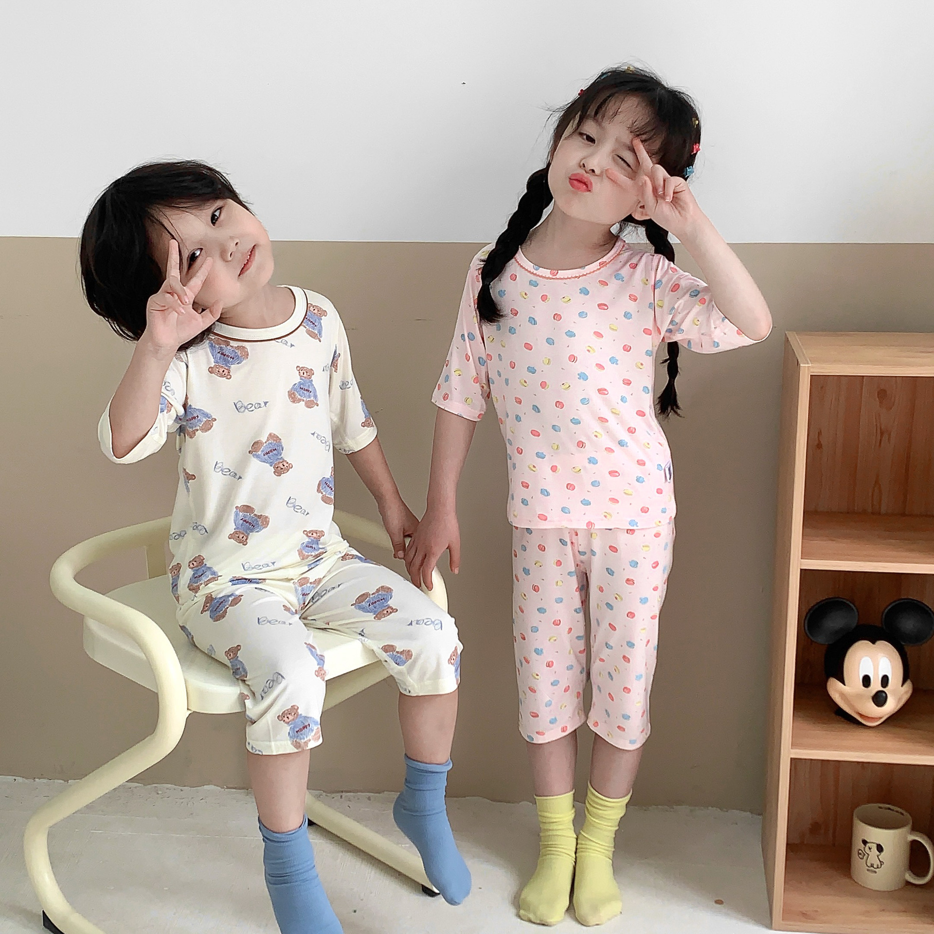 어린이 Yasser 가정 의류 소년 소녀 뜨거운 만화 7 점 소매 세트 아기 여름 얇은 에어컨 옷스토어 가기