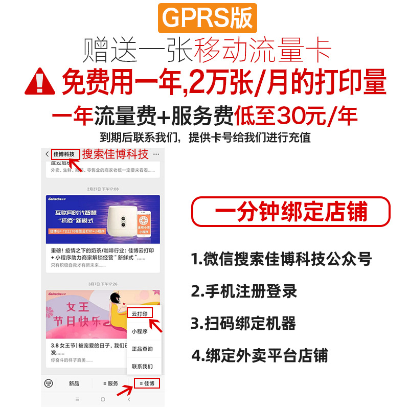 Jiabo TD2270WIFI 클라우드 라벨 프린터 Meituan 배고픈 테이크 아웃 라벨 프린터 R222C 업그레이드스토어 가기