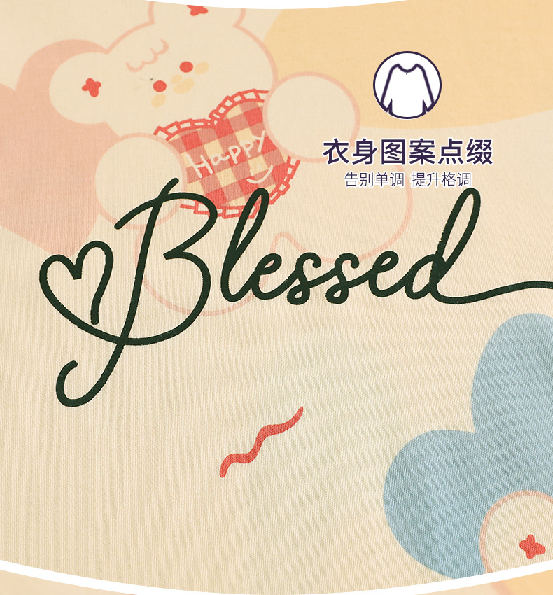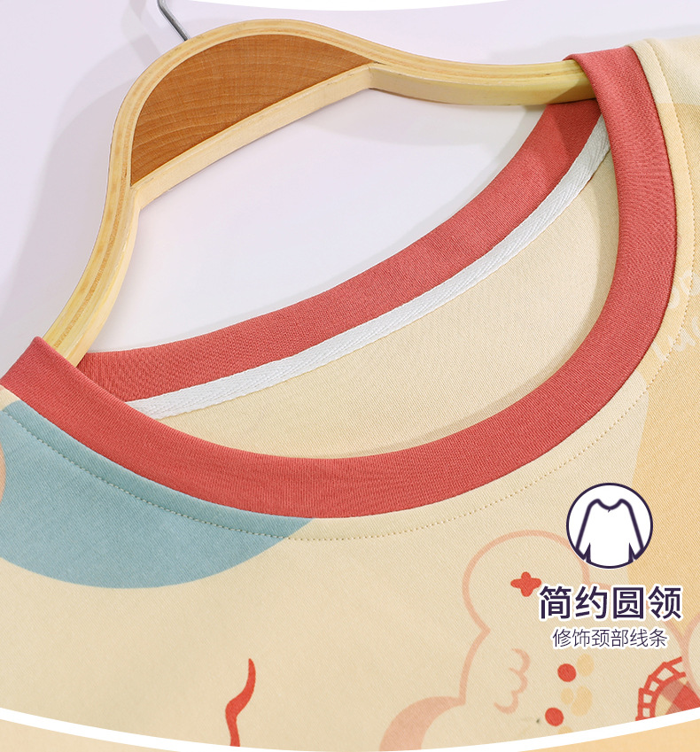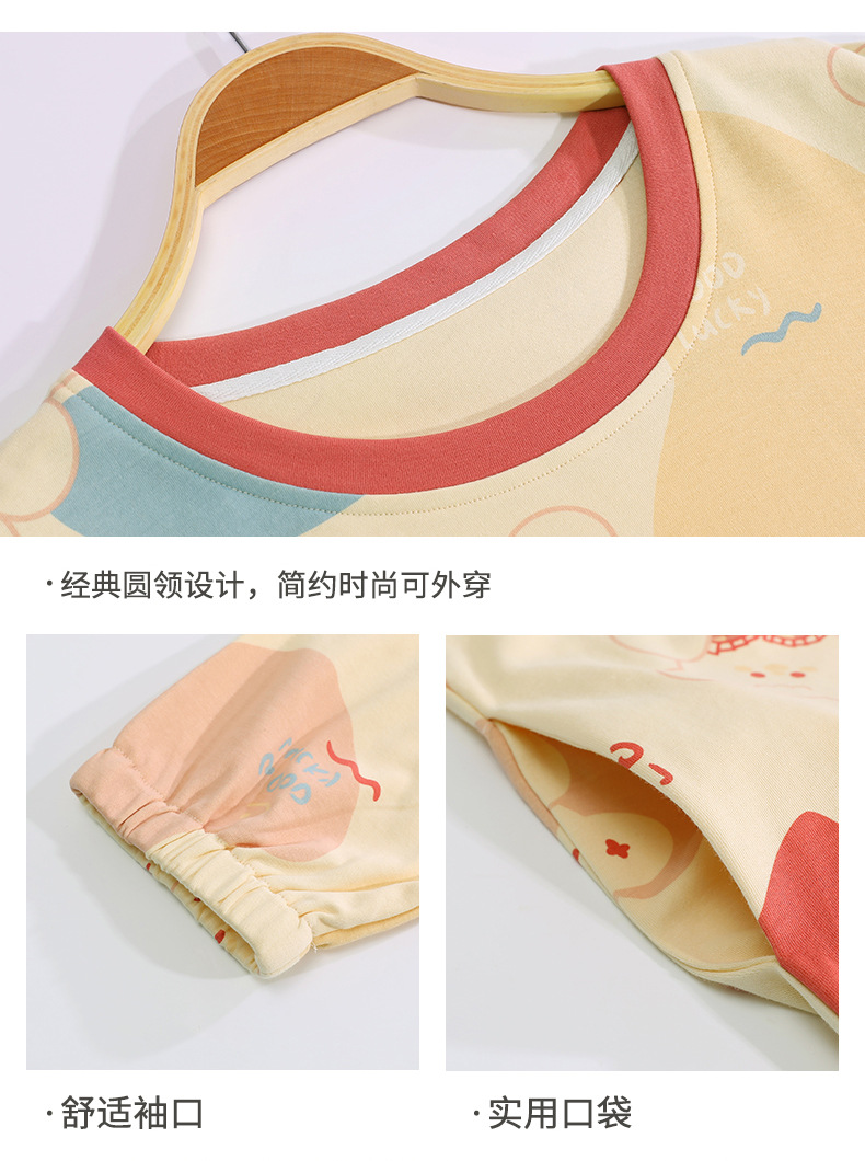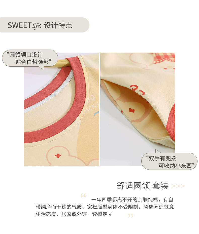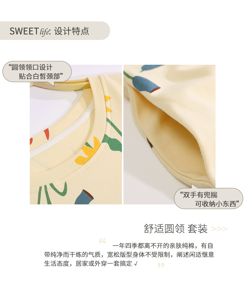 중간 길이 순면 긴팔 잠옷 여자의 봄과 가을 느슨한 라운드 넥 원피스 잠옷 얇은 가정 옷 세트스토어 가기