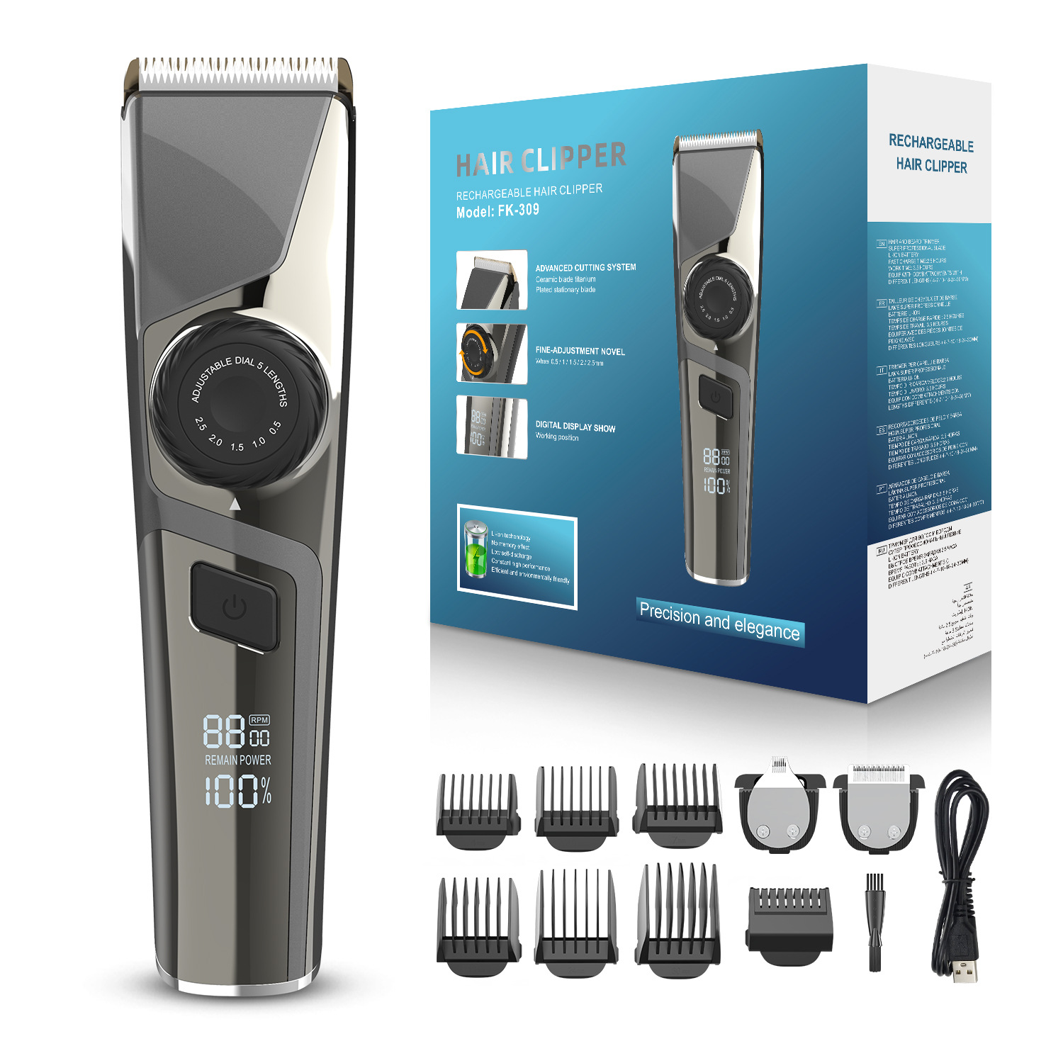 전기 이발기 전기 깎기 빠른 충전식 전기 깎기 LCD 디스플레이 세라믹 커터 헤드 가정용 면도 헤드
