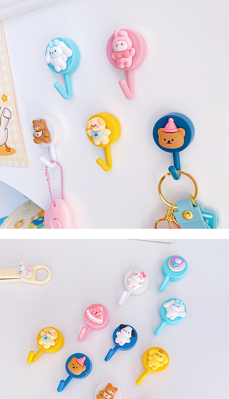 새로운 라운드 만화 후크 다기능 비 천공 스티커 후크 주방 욕실 홈 후크 저장 도매스토어 가기