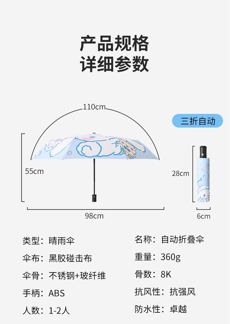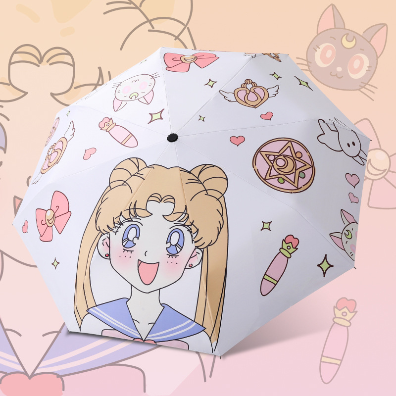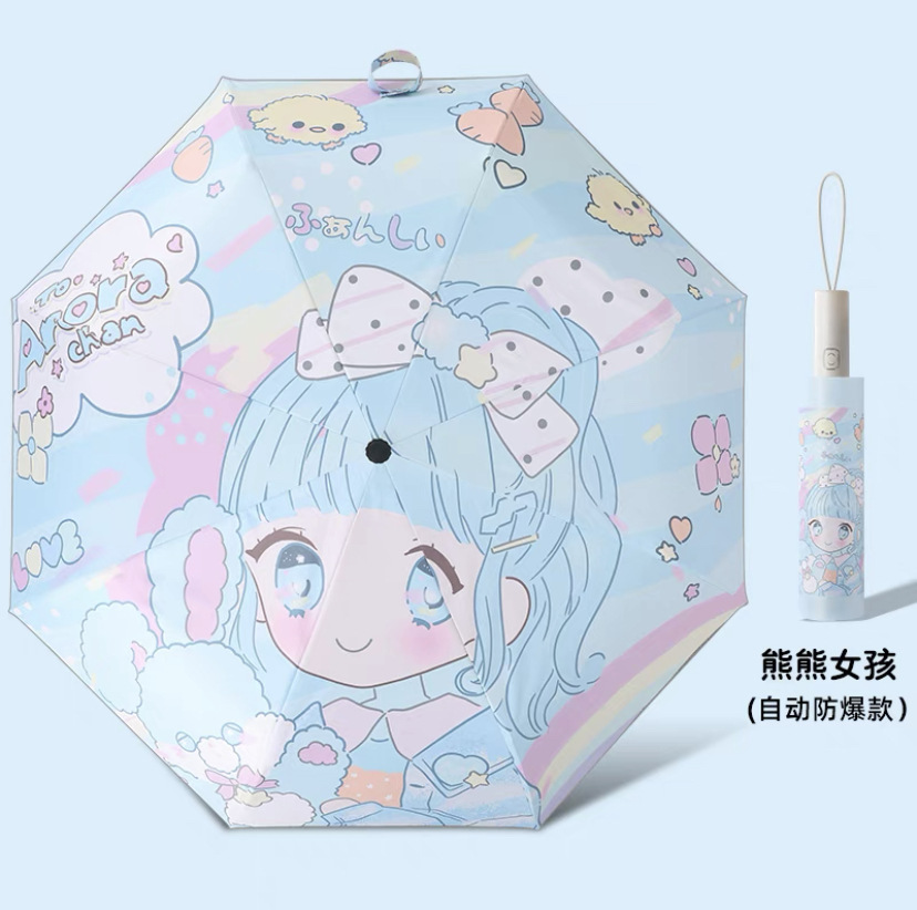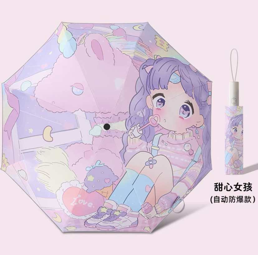 소녀 만화 큰 어린이의 완전 자동 태양 우산 자외선 차단제 자외선 차단 접이식 고가 우산 맑고 비 이중 사용스토어 가기