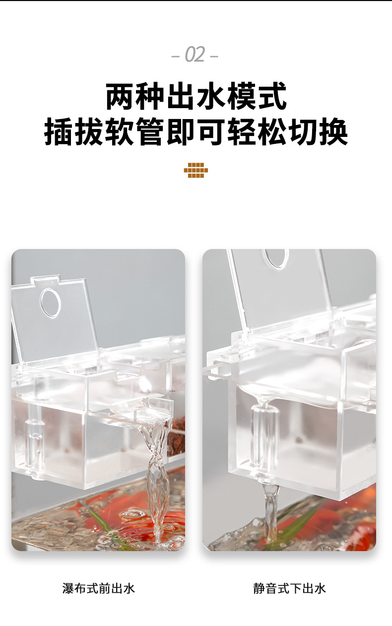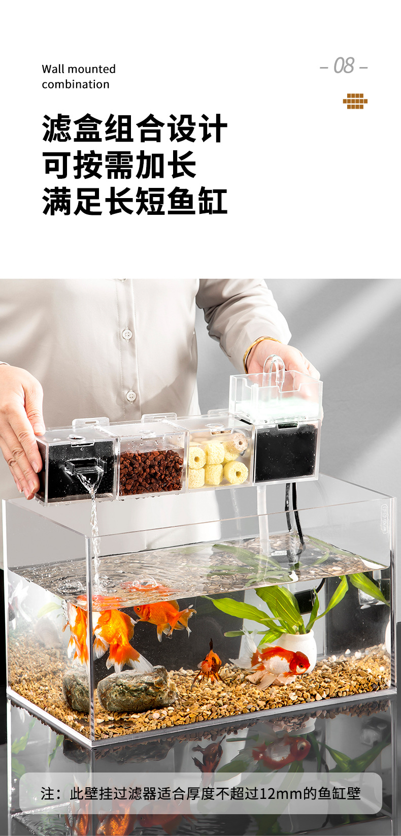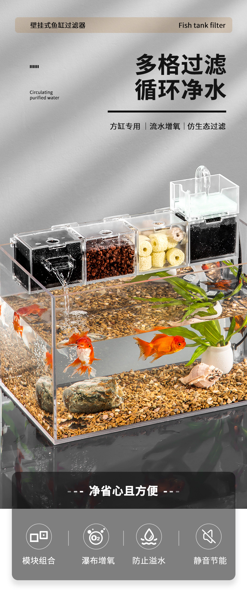 물고기 탱크 필터 상자 3 대 1 폭기 거북이 탱크 수족관 벽에 장착 된 음소거 순환 정수기