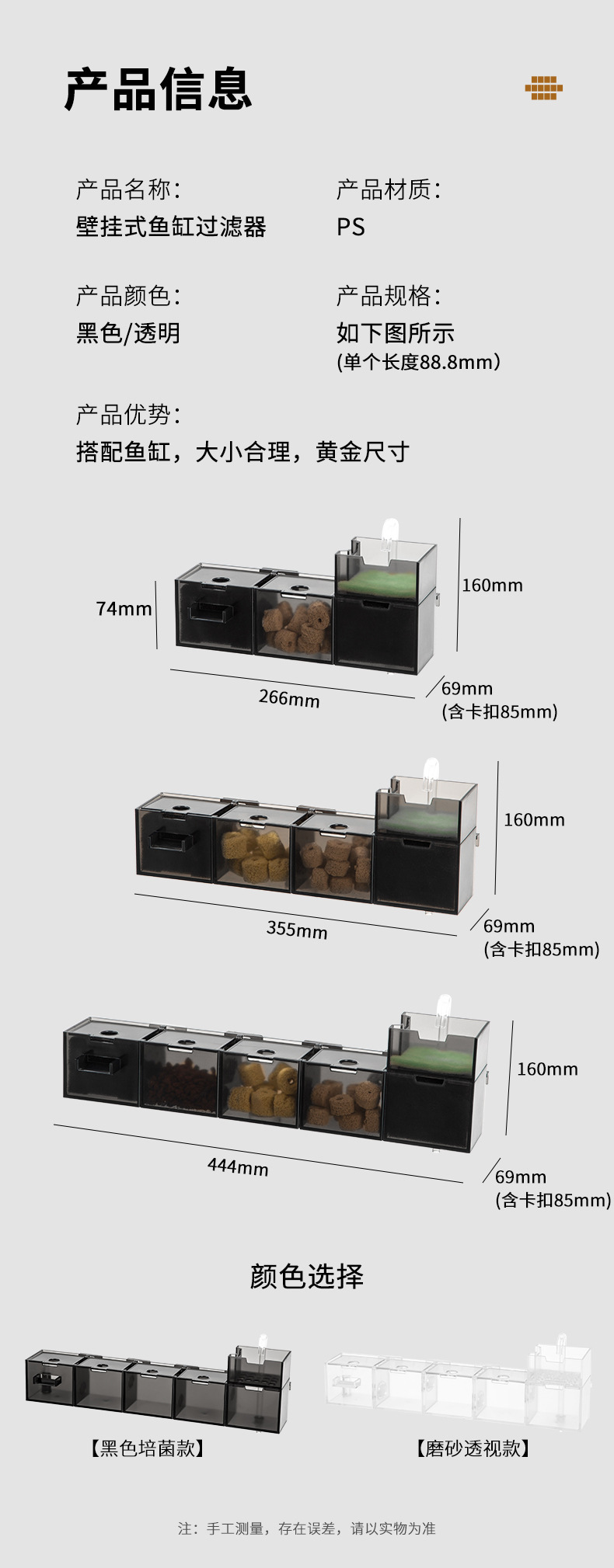 물고기 탱크 필터 상자 3 대 1 폭기 거북이 탱크 수족관 벽에 장착 된 음소거 순환 정수기스토어 가기