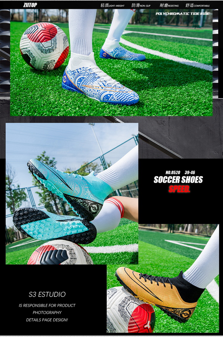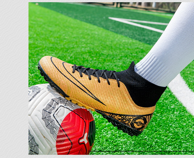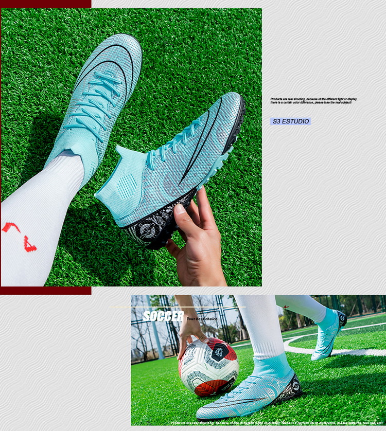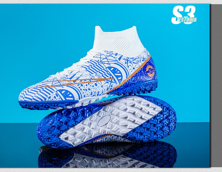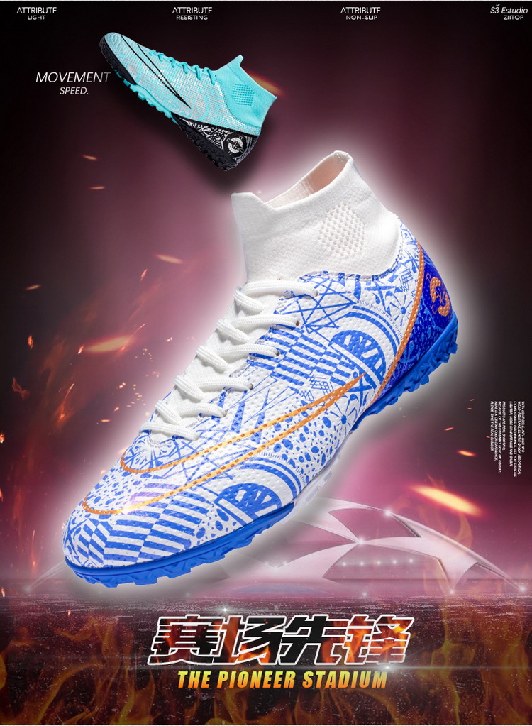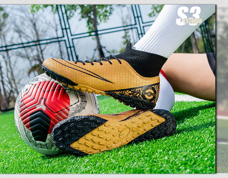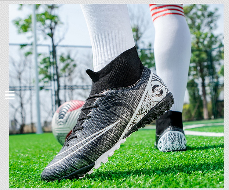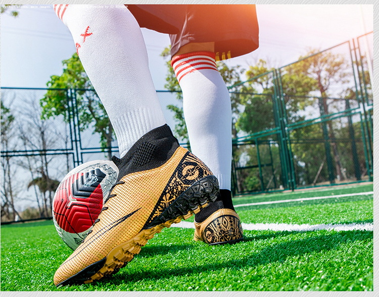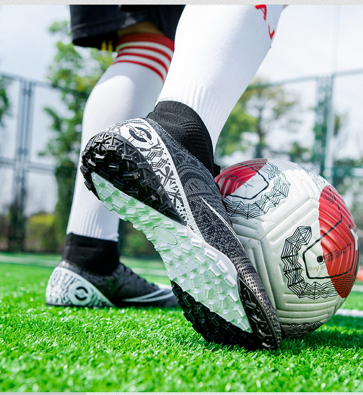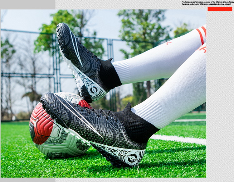 1101 남자와 여자의 축구 신발 하이 탑 비행 양말 입 가죽 스파이크 깨진 손톱 플랫 바닥 전문 경쟁 훈련 운동화