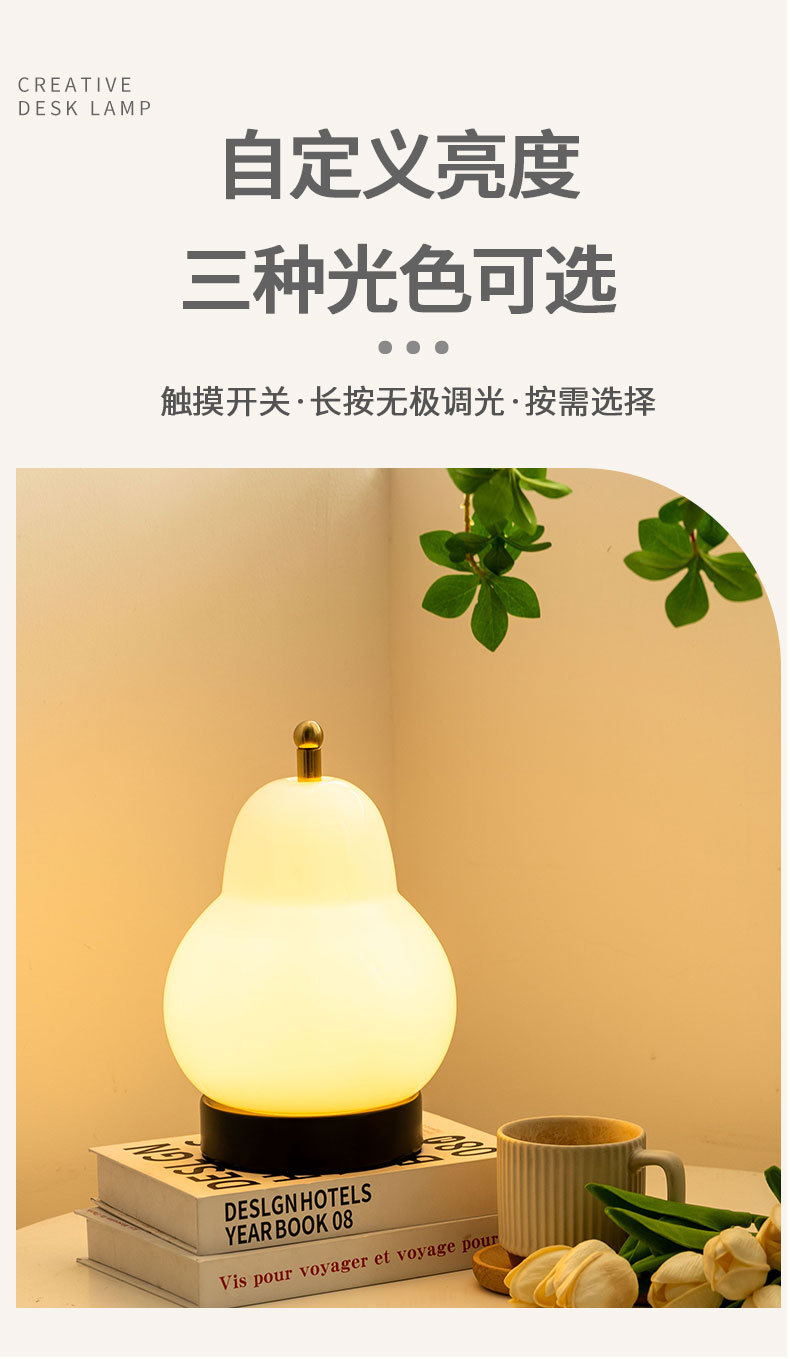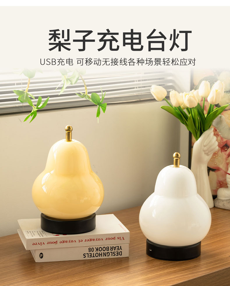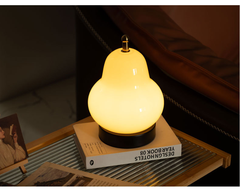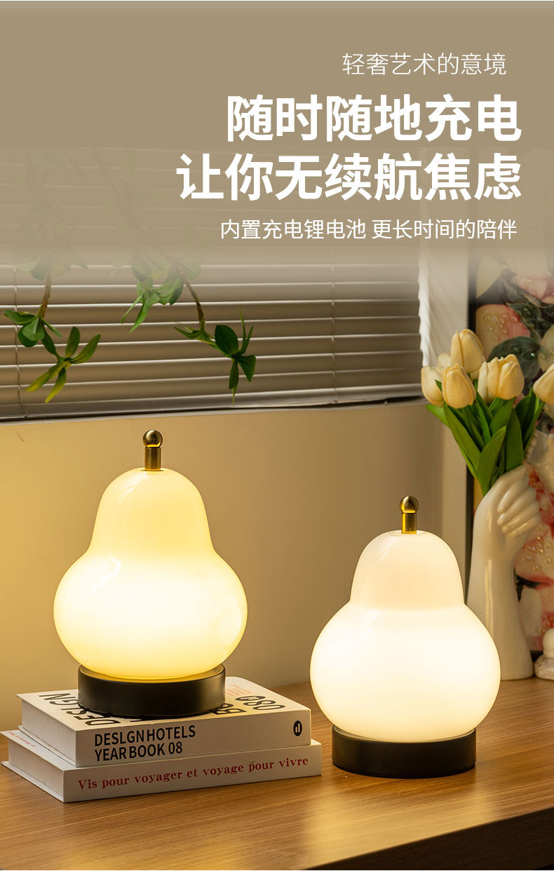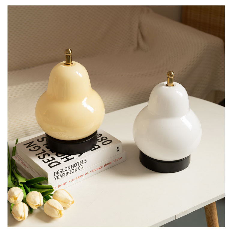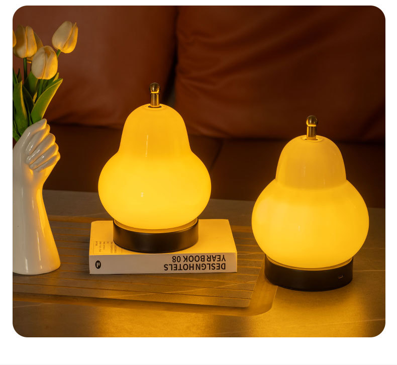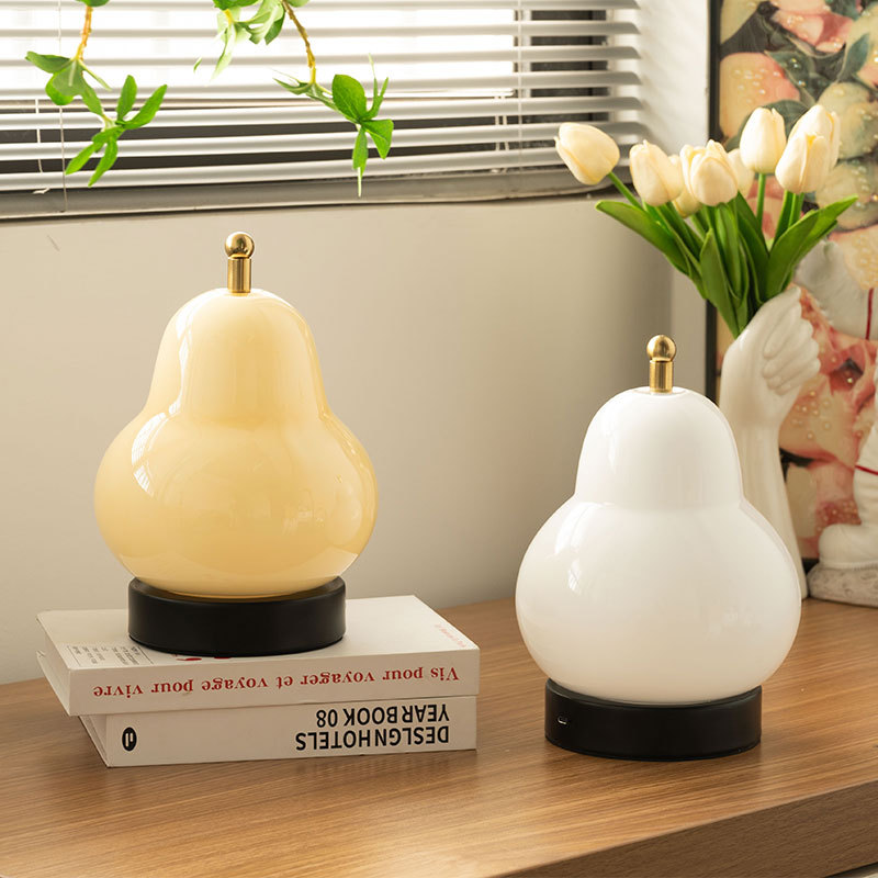 프렌치 크림 유리 배 램프 간단한 거실 침대 옆 탁자 램프 분위기 장식 충전식 터치 야간 조명
