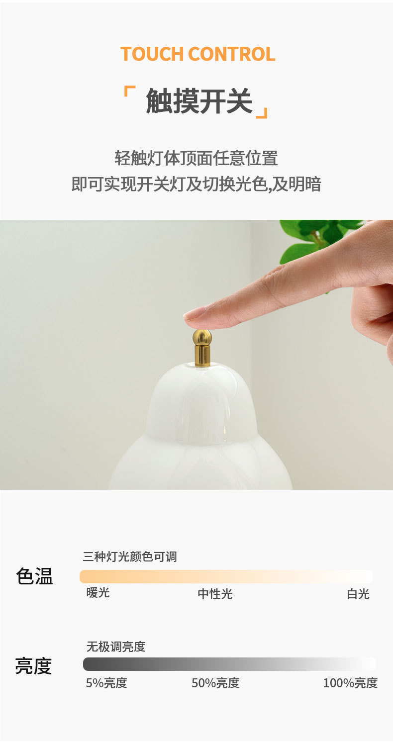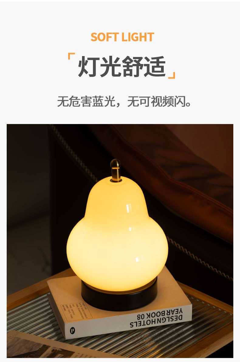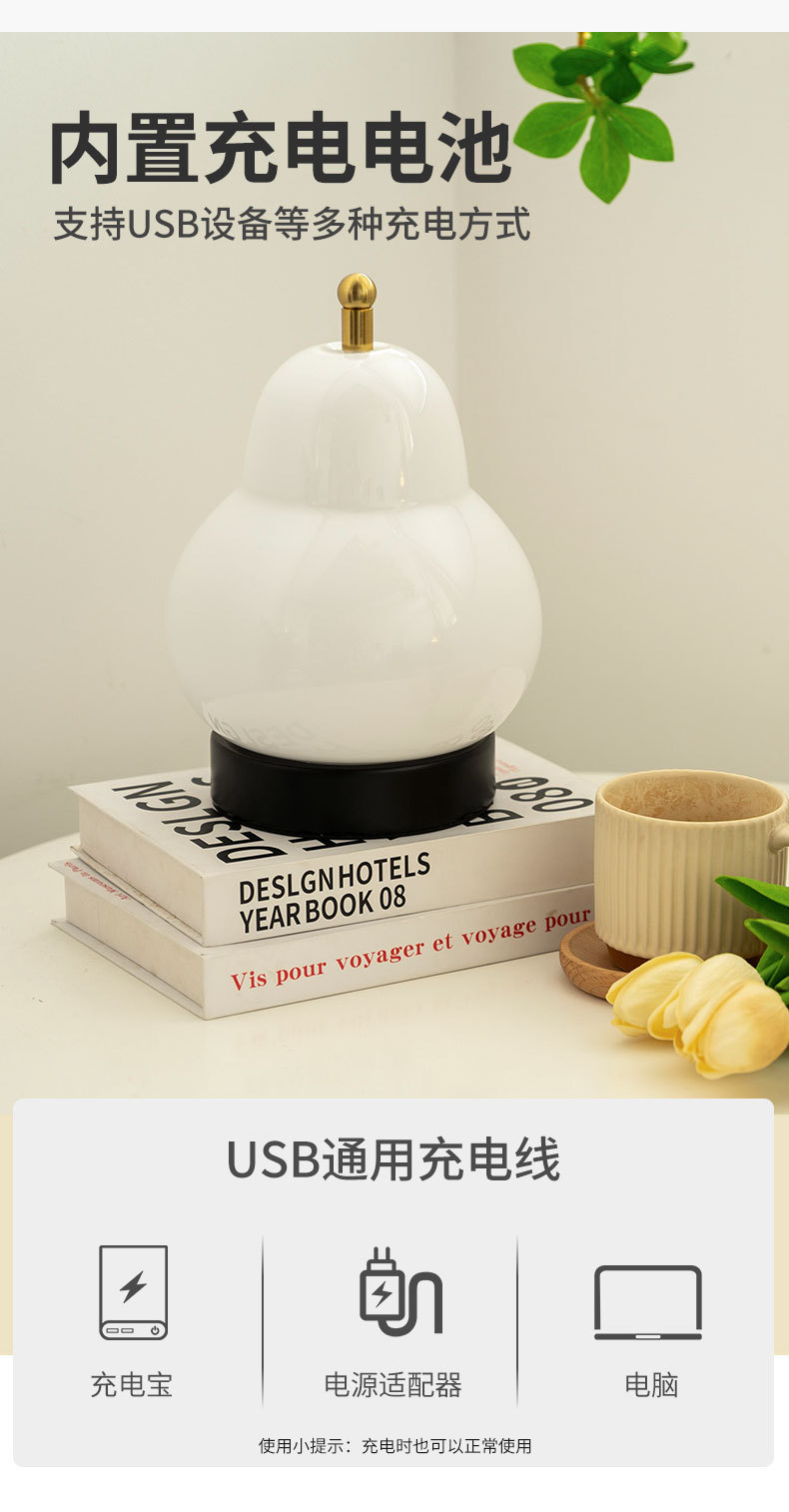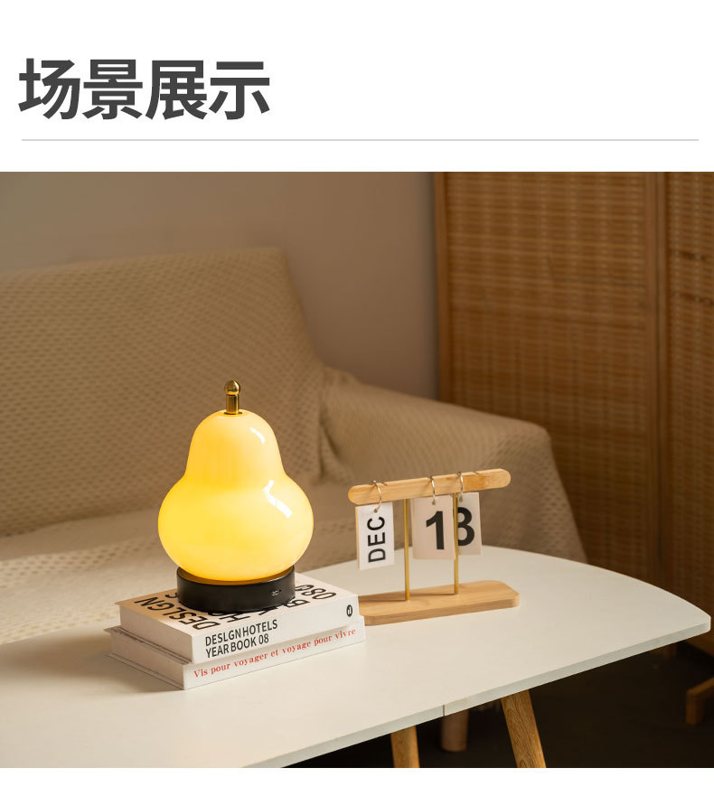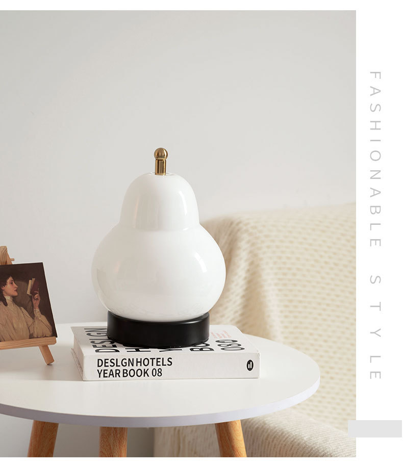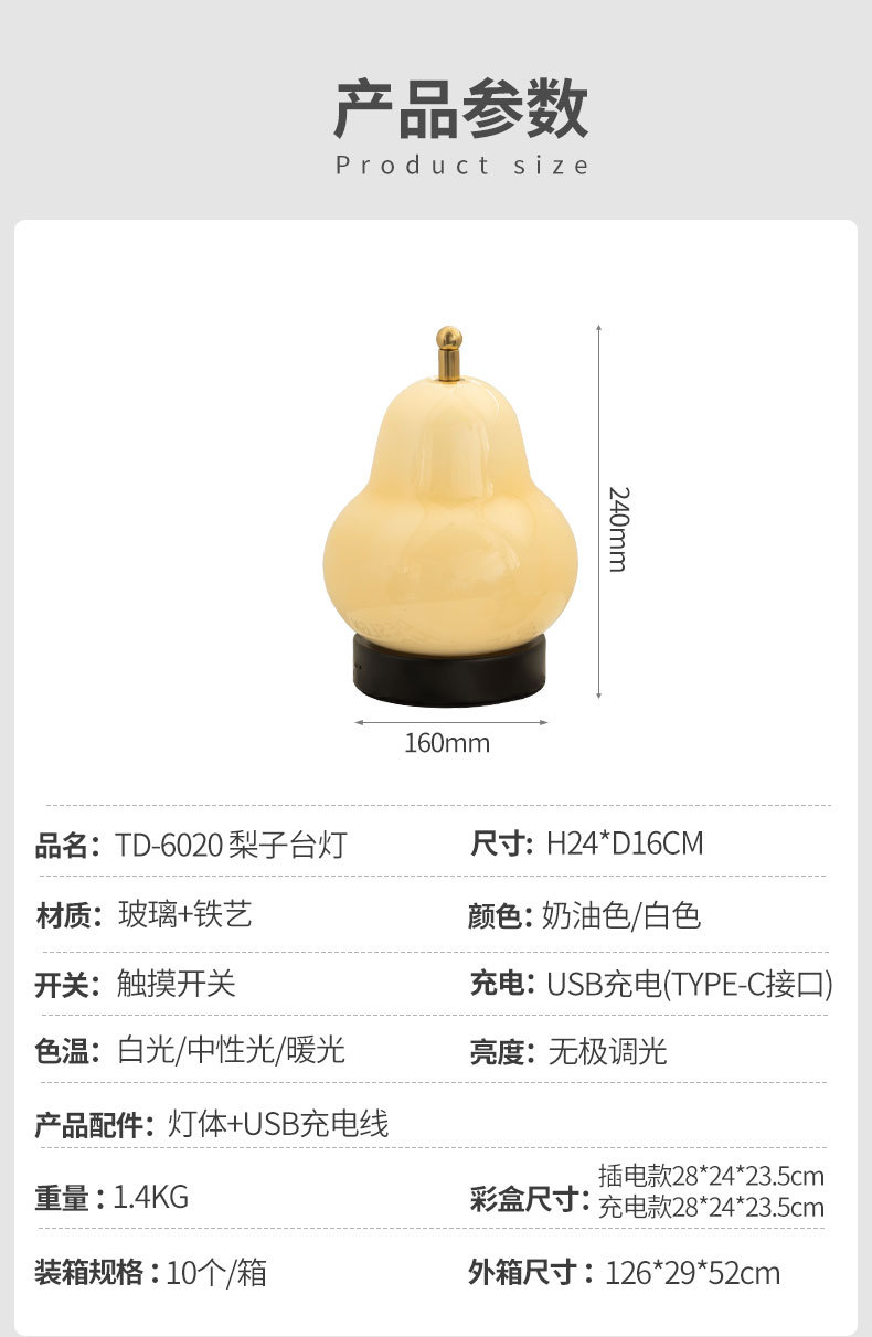 프렌치 크림 유리 배 램프 간단한 거실 침대 옆 탁자 램프 분위기 장식 충전식 터치 야간 조명