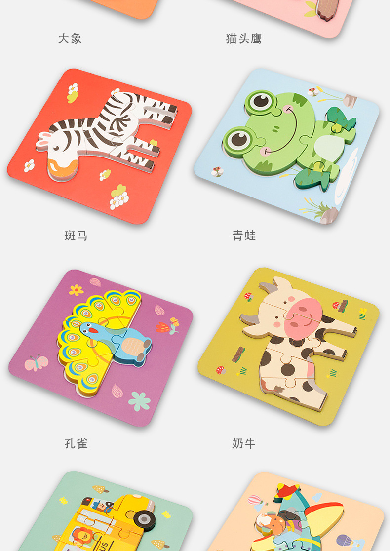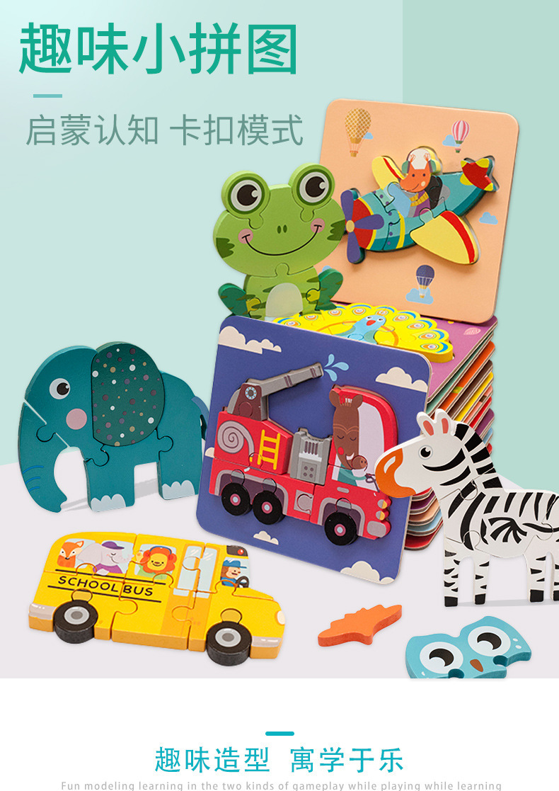 나무 어린이 입체 직소 퍼즐 동물 교통 조기 교육인지 손 그립 버클 퍼즐 장난감 도매스토어 가기