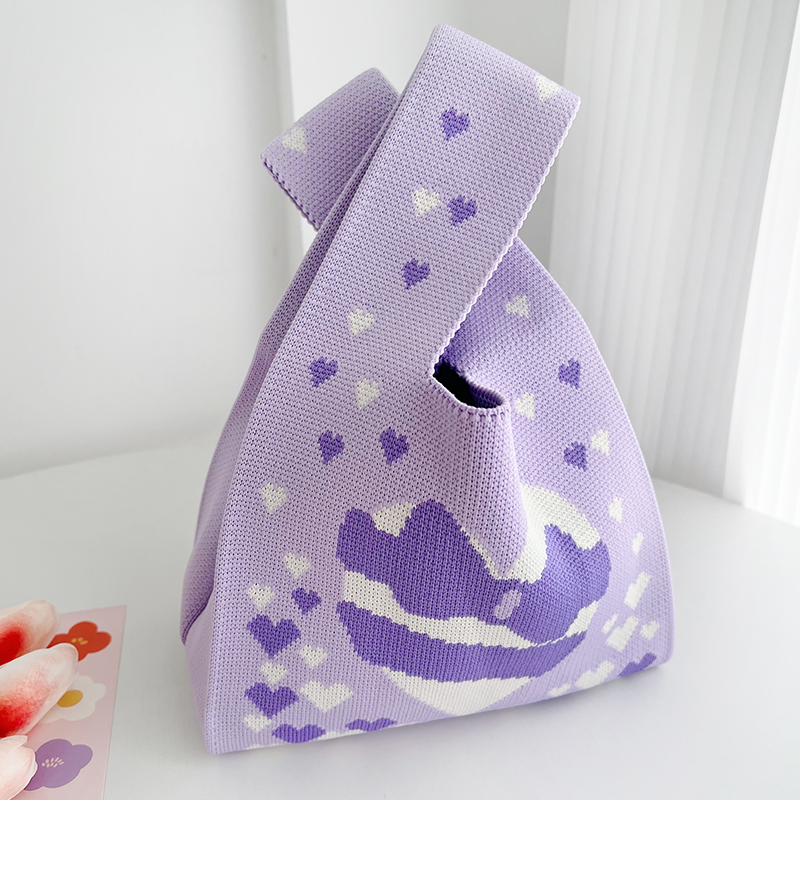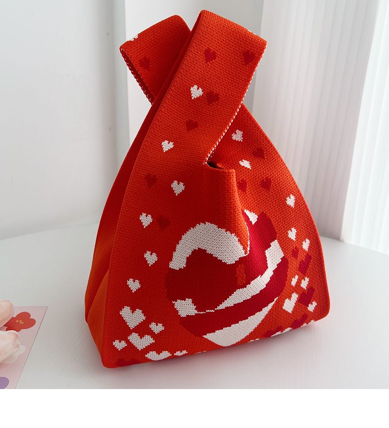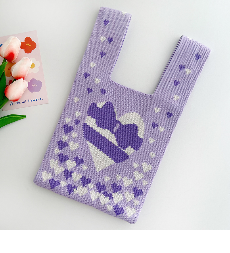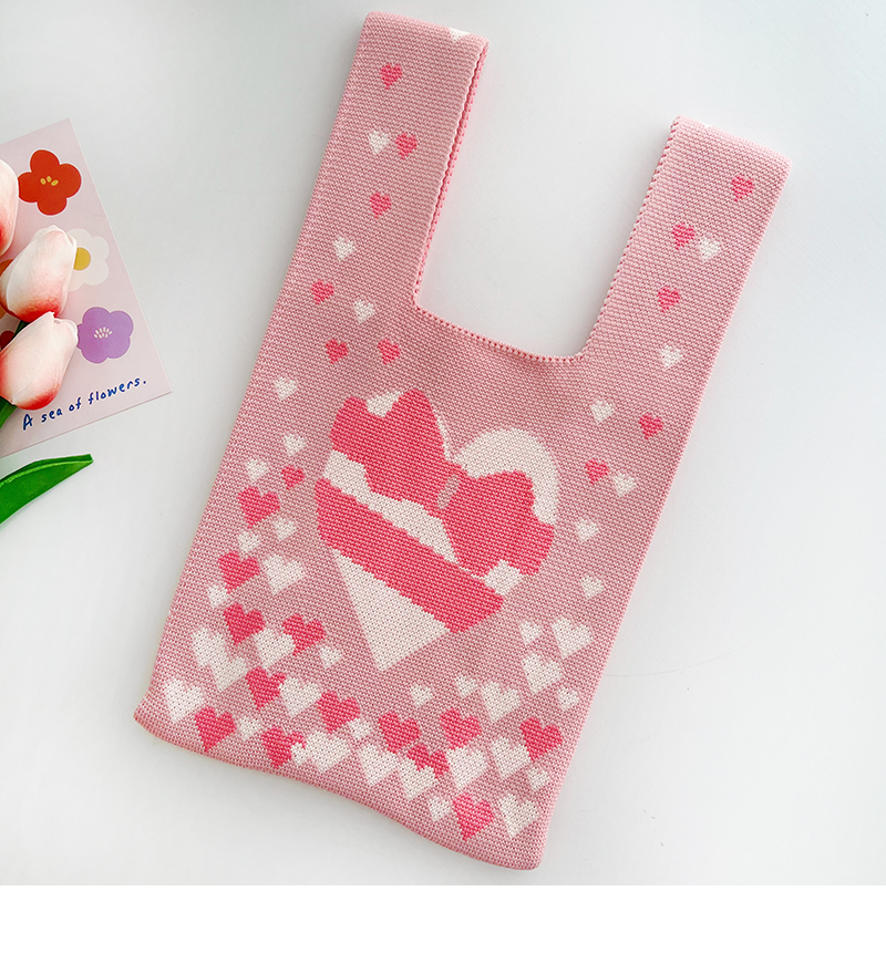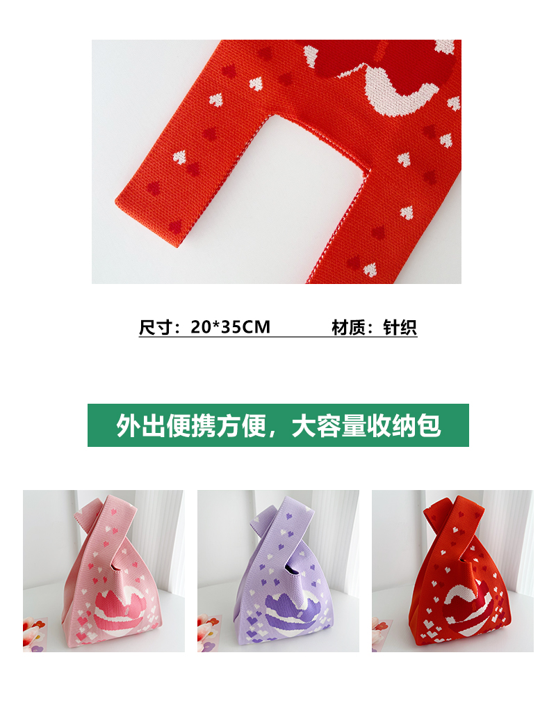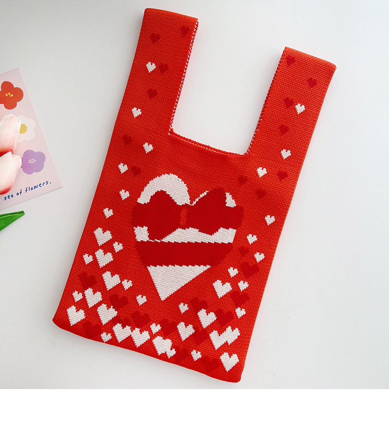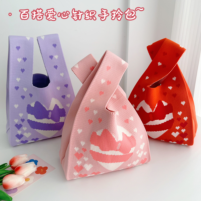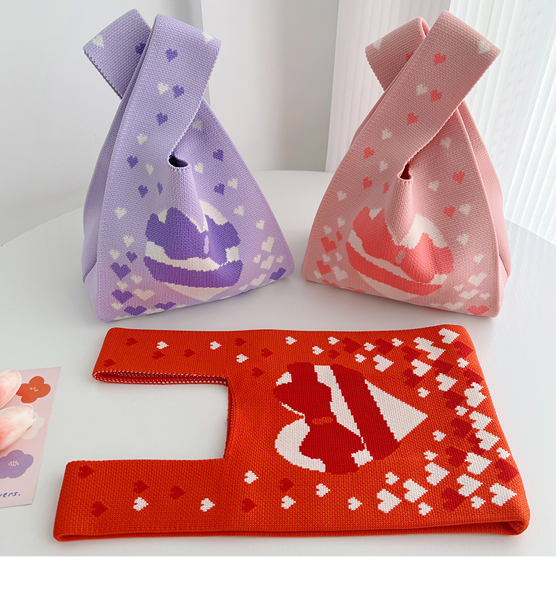일본과 한국 스타일 대비 컬러 하트 백 니트 질감 핸드백 여성용 봄과 여름 모든 매치 핸드백 대용량 조끼 가방스토어 가기