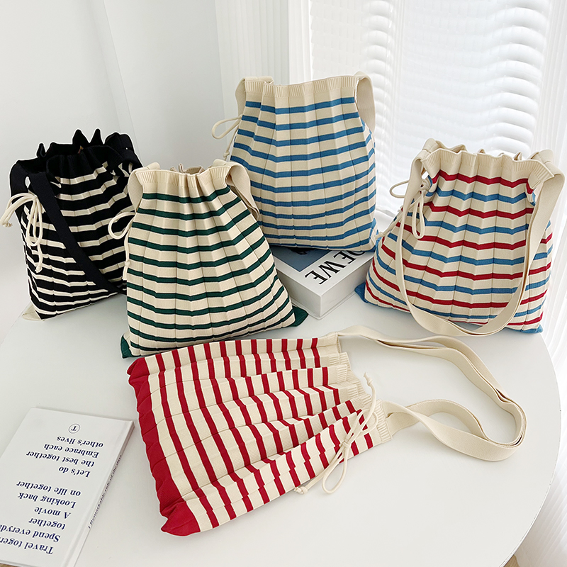 한국 틈새 디자인 여성용 가방 버킷 폴드 백 캐주얼 심플 스트라이프 모든 매치 숄더백 크로스바디 오르간 스몰 백스토어 가기