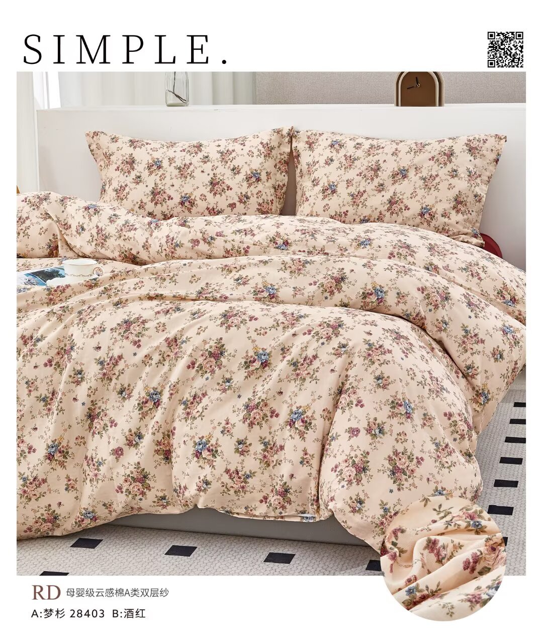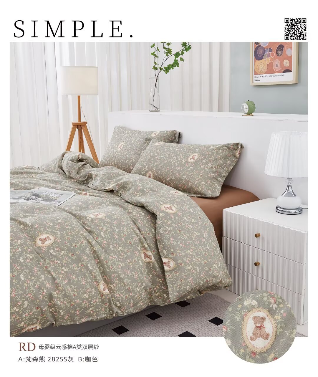 自有工厂生产,各个环节始自源头,量大价格从优,欢迎咨询!支持成品定制!如需更多花型,可随时联系客服!全棉复古双层纱面料详情_01