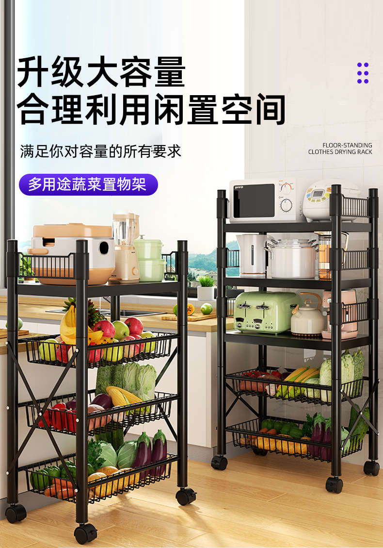 주방 야채 바구니 보관 랙 가정용 바닥 다층 전자 레인지 보관 랙 다기능 선반 보관 랙스토어 가기