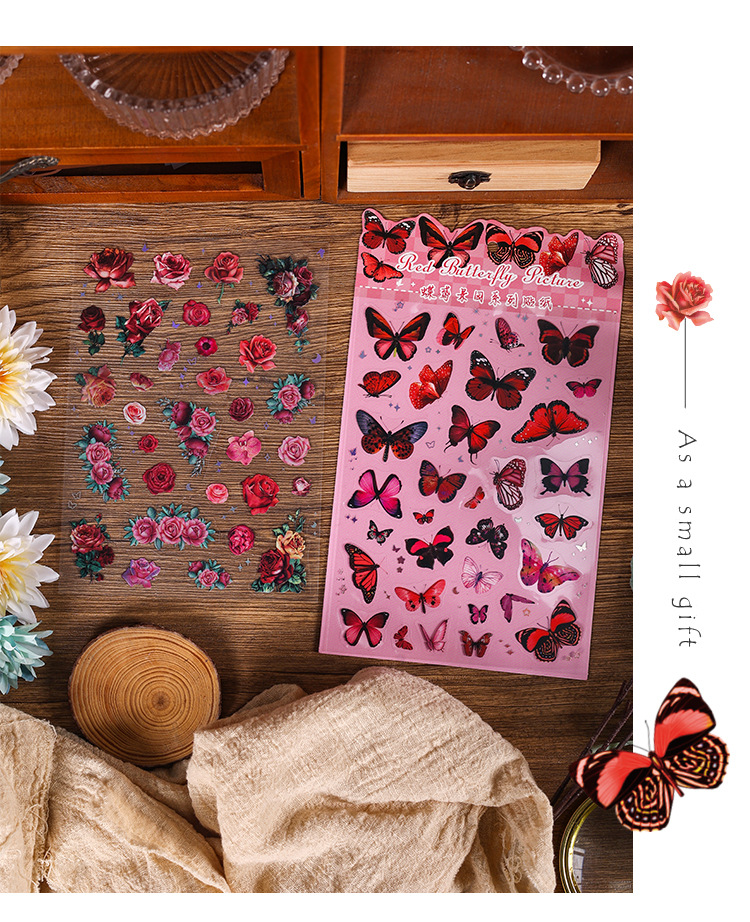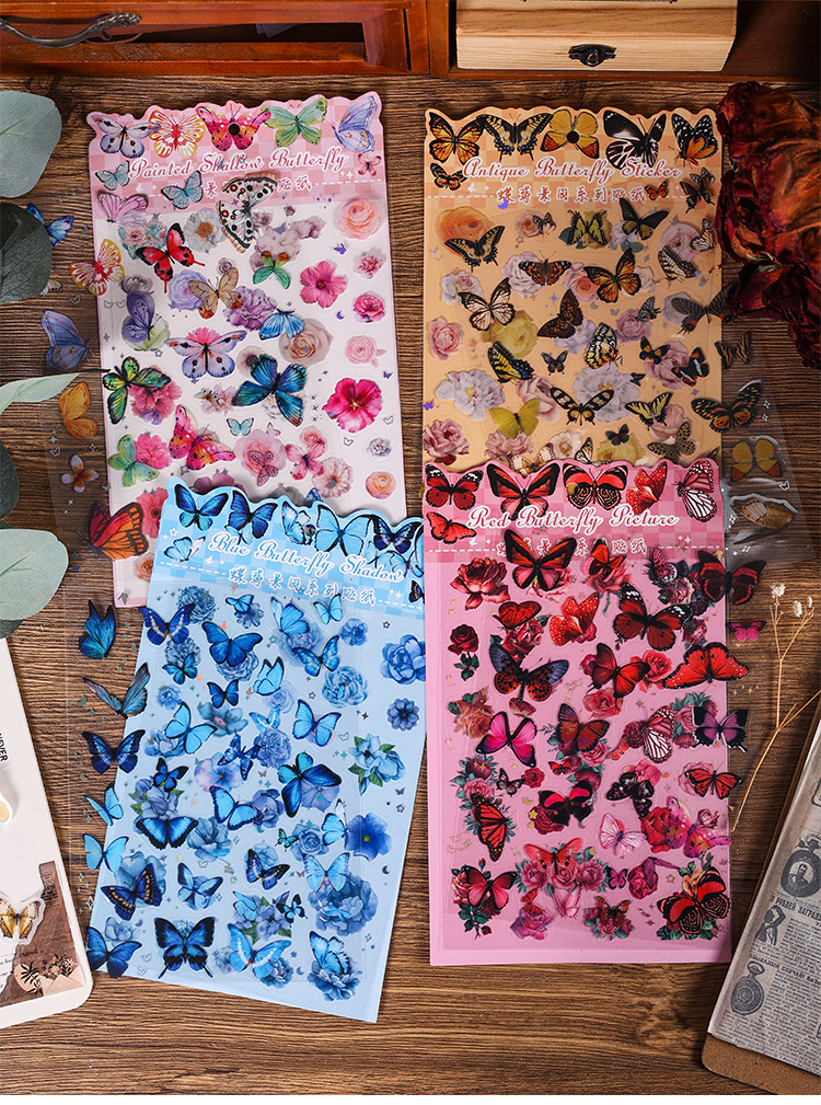 새로운 나비 연 풍경 정원 방수 pvc 창조적 인 나비 꽃 장식 패턴 손 계정 스티커 복고풍 재료 스티커스토어 가기