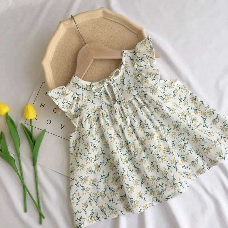 여름 꽃 원피스 반팔 어린 소녀 아기 작은 플라이 슬리브 여름 스커트 순면 세련된 인형스토어 가기