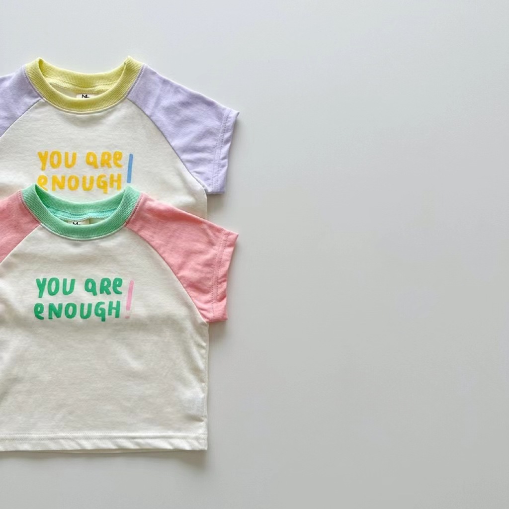 한국식 인 베이비 여름 스티칭 컬러 매칭 3 색 세트 레터 탑 라운드 넥 캔디 올매치 투피스 세트스토어 가기