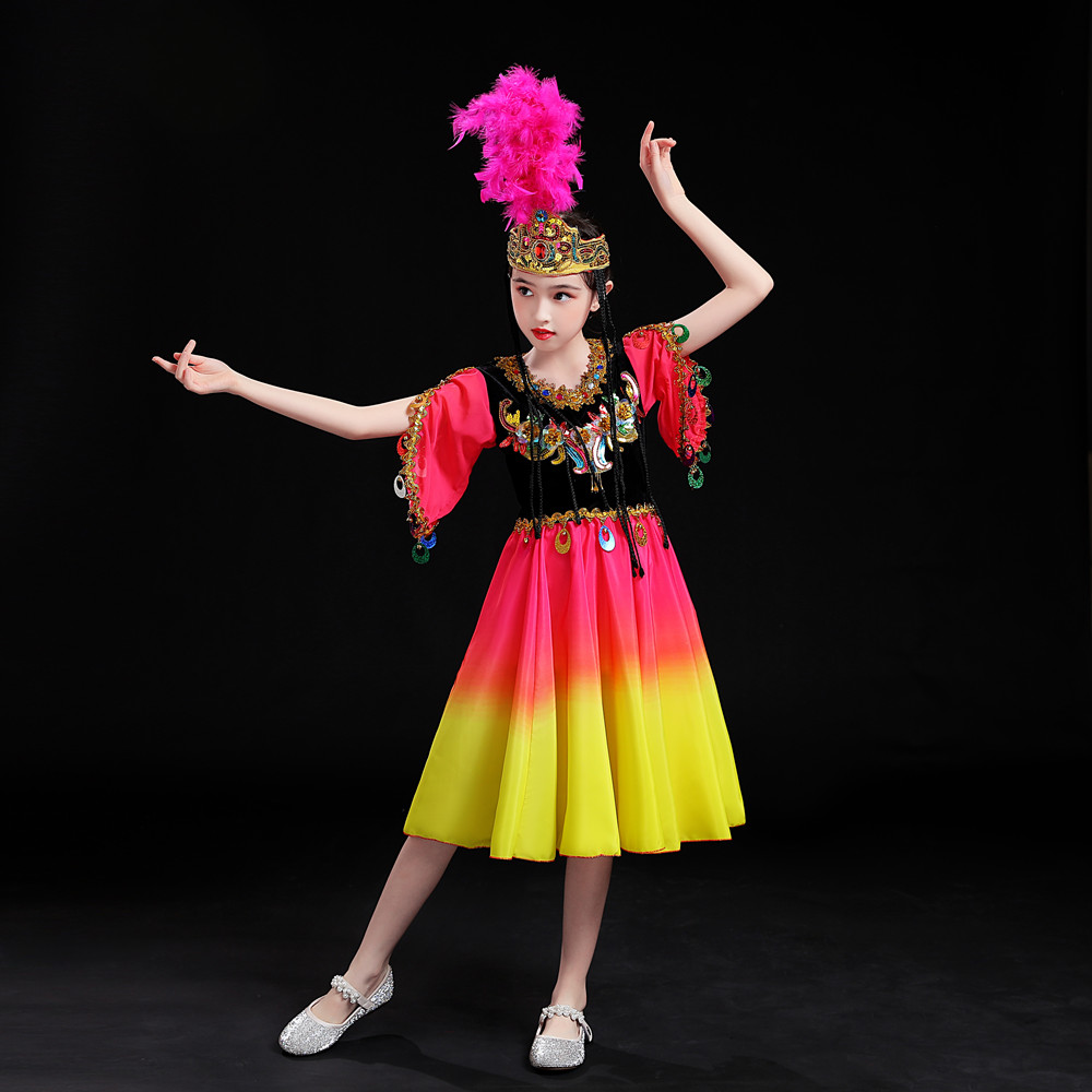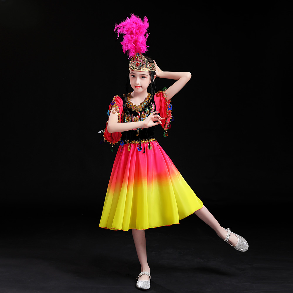 소년 소녀 56 민족 그룹 우즈벡 무대 공연 의상 소수 민족 스타일 댄스 의상