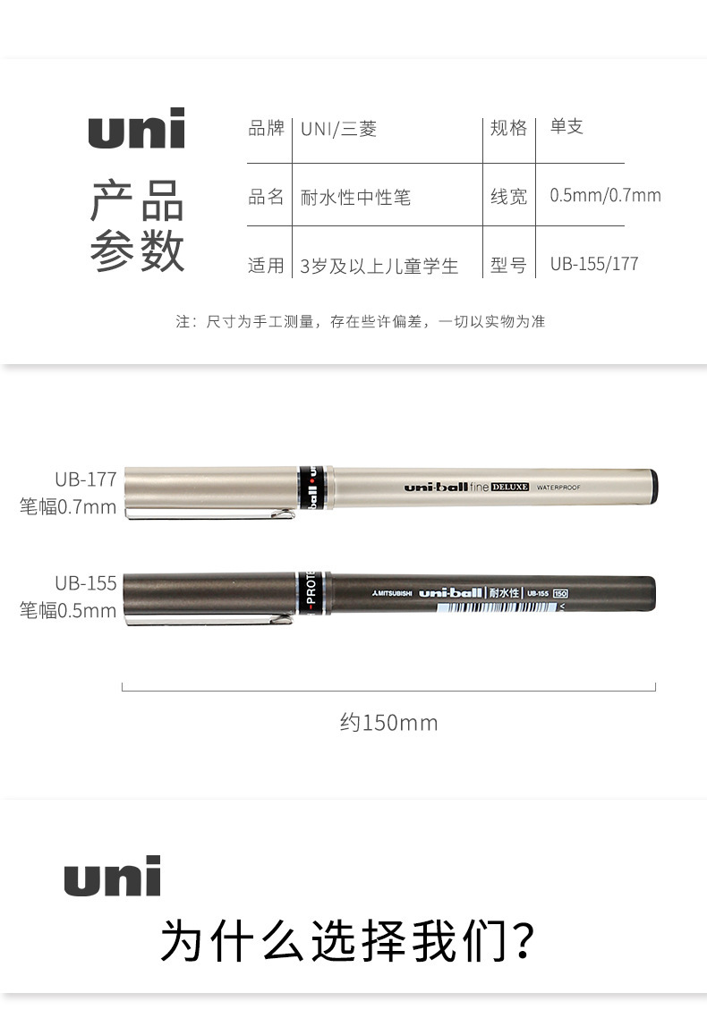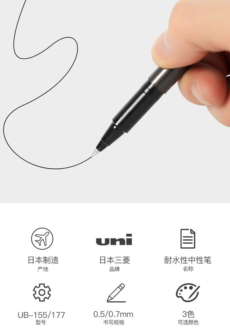 일본 유니 미쓰비시 UB-155 젤 펜 0.5mm 금속 펜 홀더 볼펜 학생 시험 펜 사인 펜스토어 가기