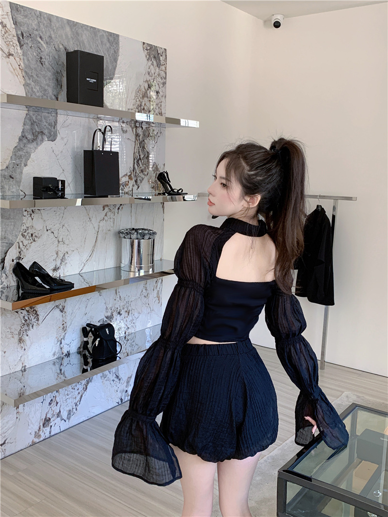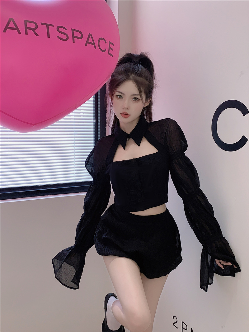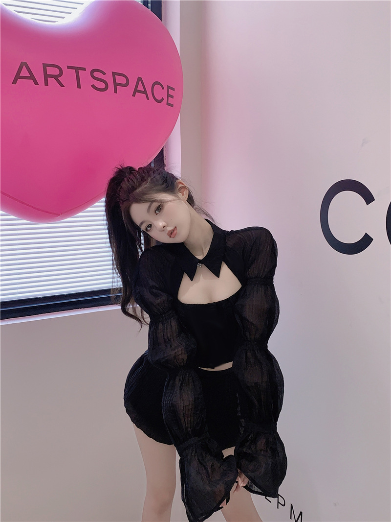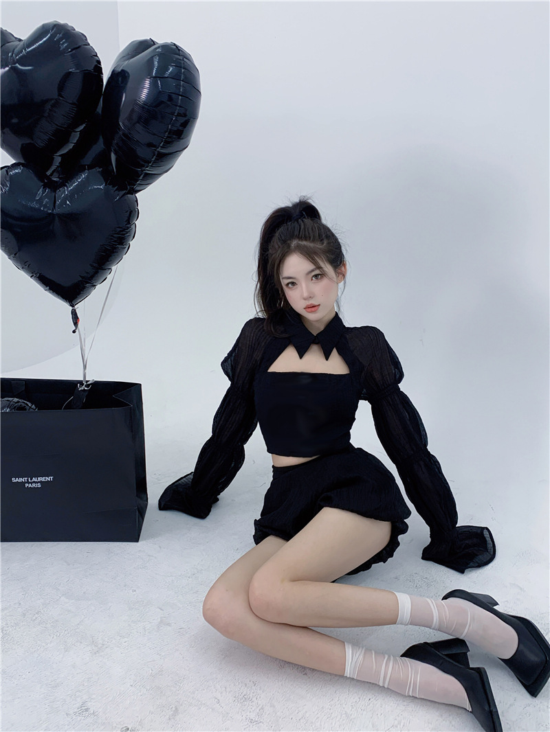 袖子整体是雪纺的   领子有加朴   不会变形  修身短款