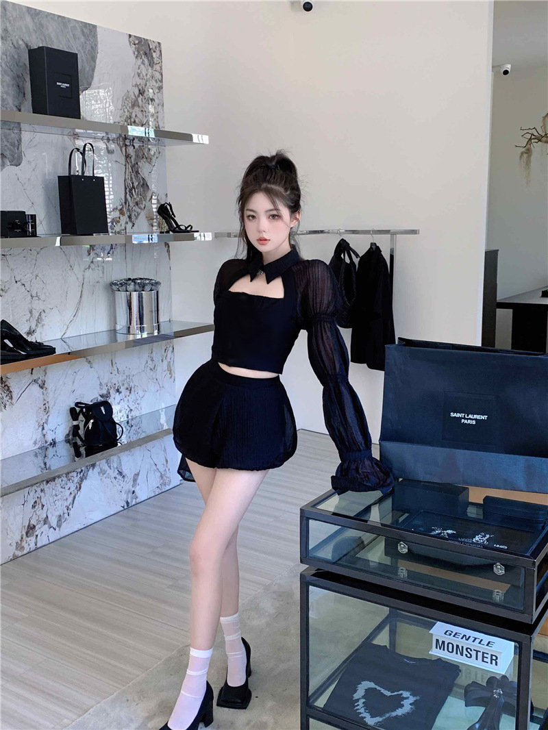 시폰 스티칭 스파이스 소녀 빈 디자인 감각 하트 작은 셔츠 2024 봄과 여름 새로운 폴로 칼라 짧은 긴 소매 셔츠스토어 가기