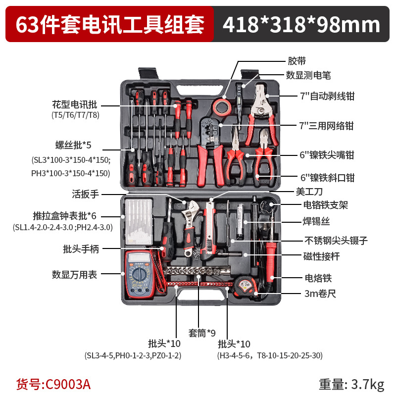Kafwell 전자 전기 도구 세트 통신 유지 보수 멀티 미터 테스터 일일 가정용 도구 상자스토어 가기