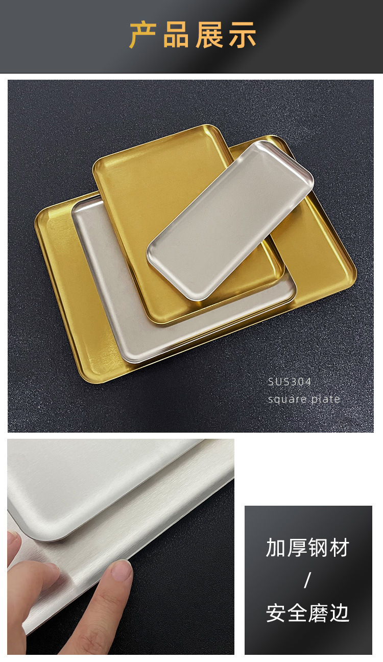 한국식 304 스테인리스 직사각형 커피숍 트레이 디저트 케이크 접시 상업용 금색 바베큐 접시 평판스토어 가기
