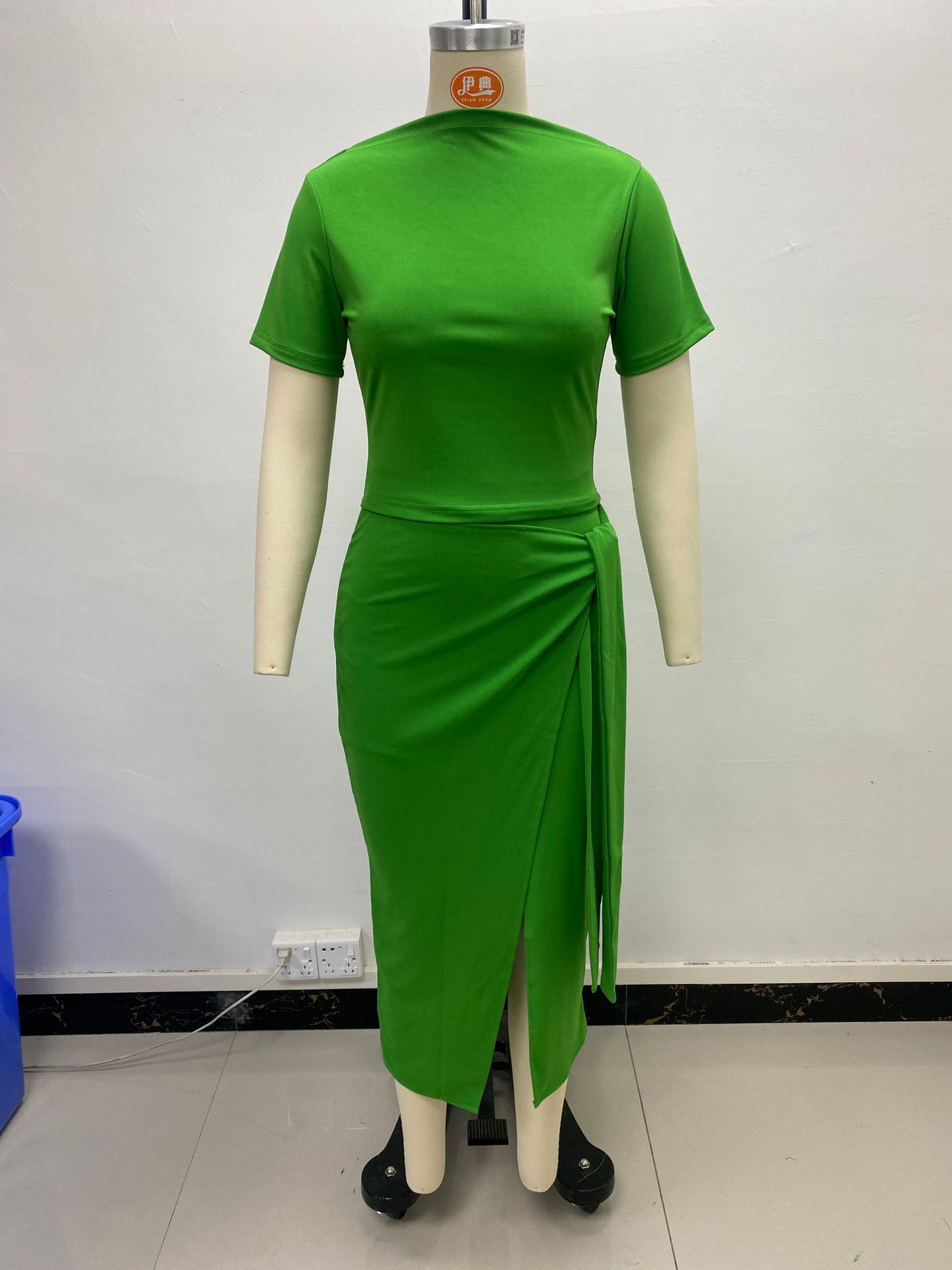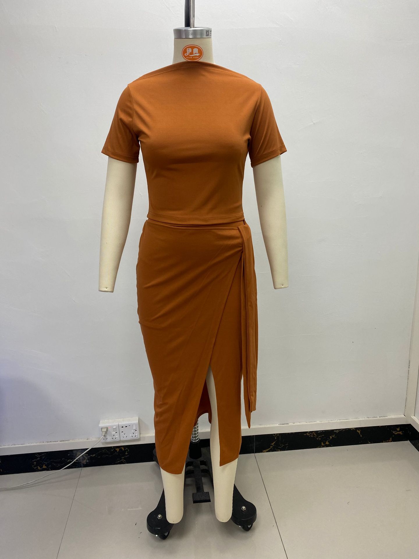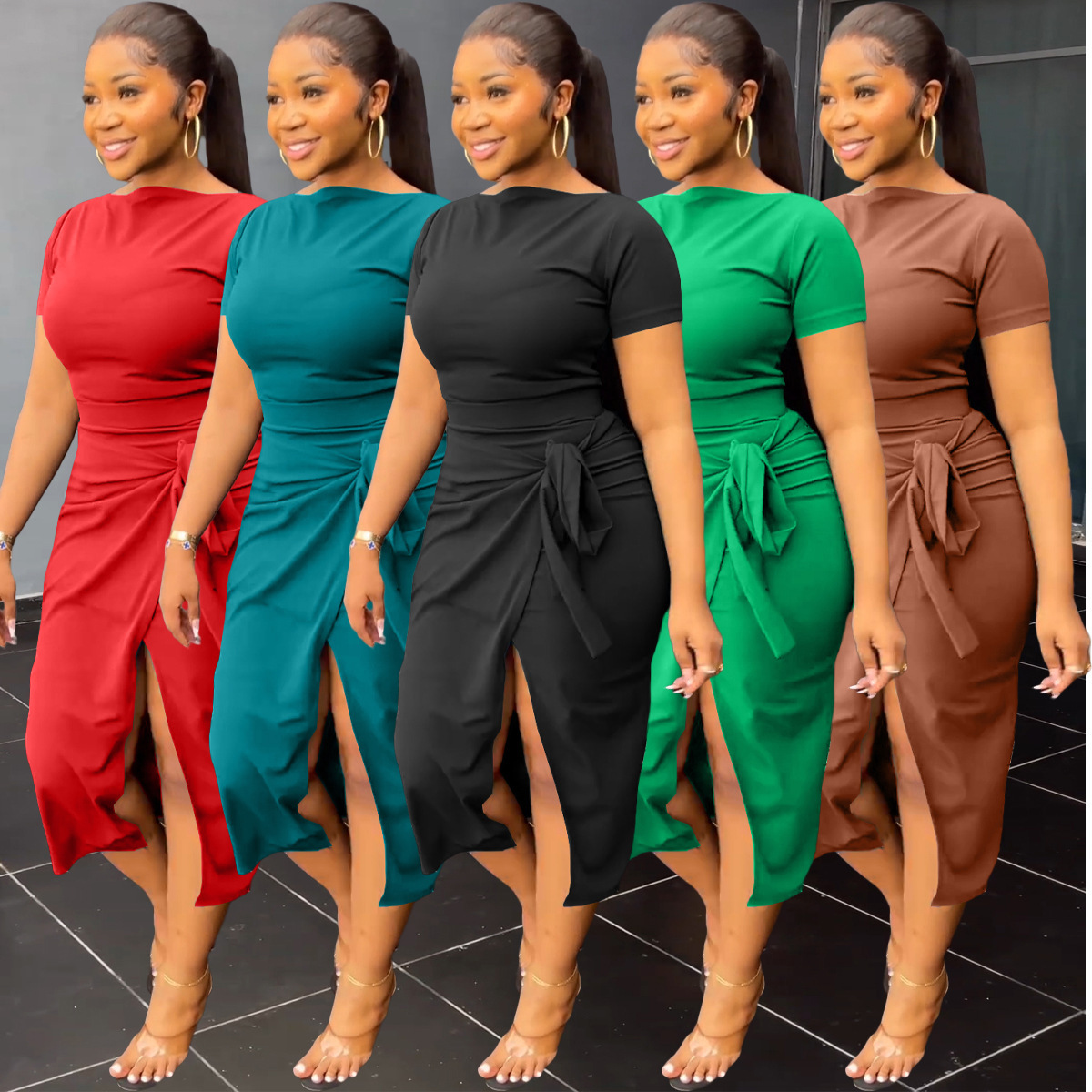 GH99151 재고 아마존 유럽과 미국 여성 의류 봄과 여름 캐주얼 오프 숄더 스플릿 스트랩 세트 원피스 투피스 세트