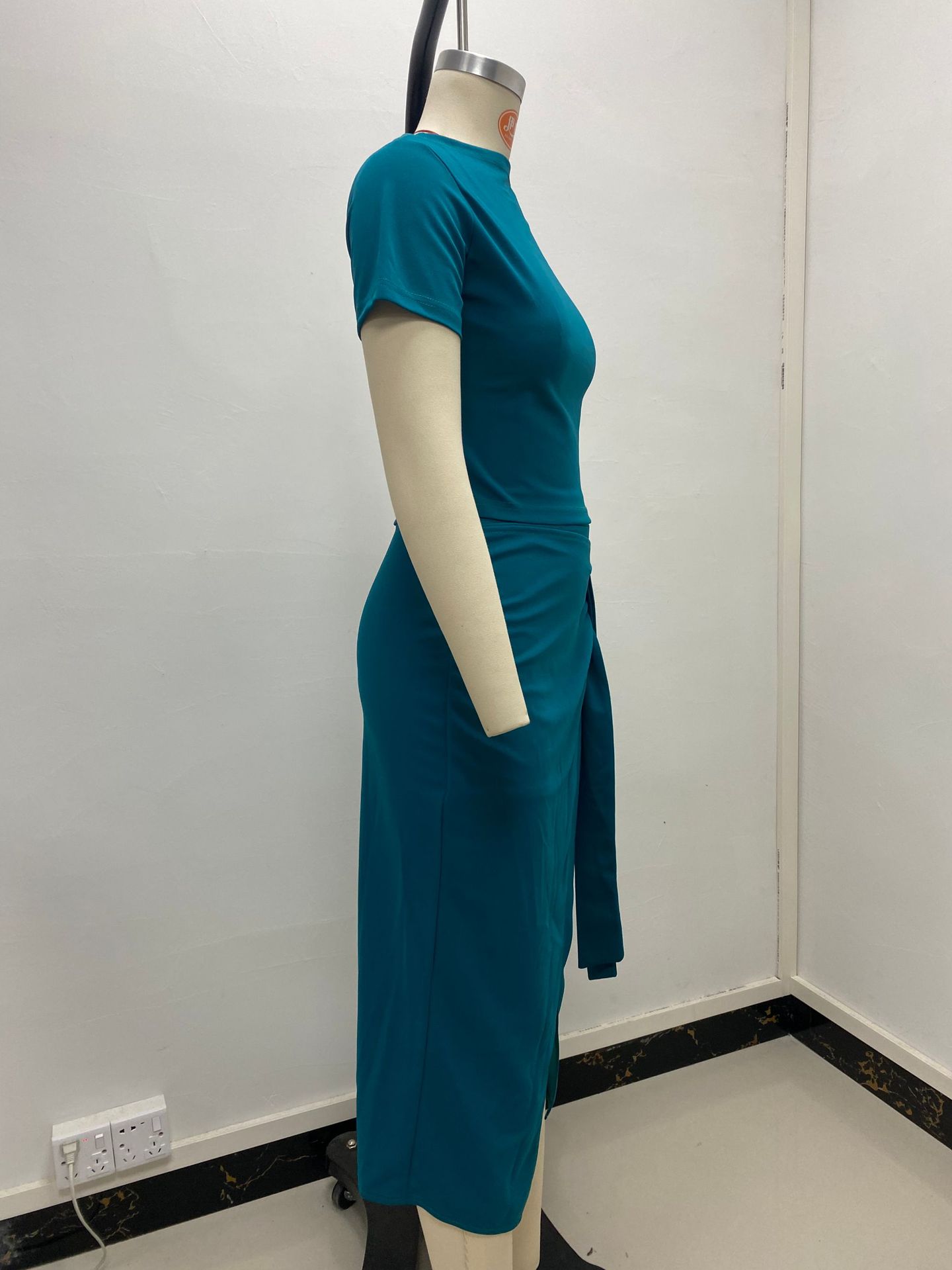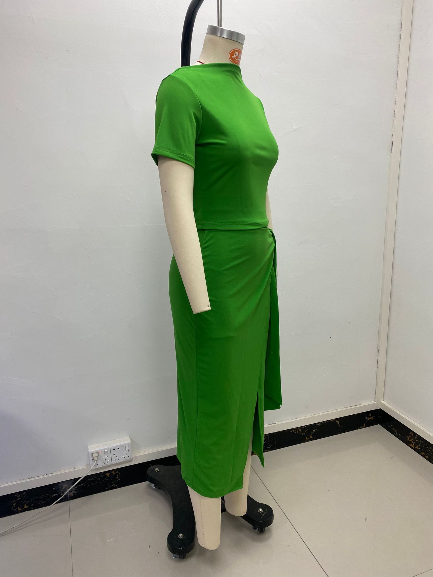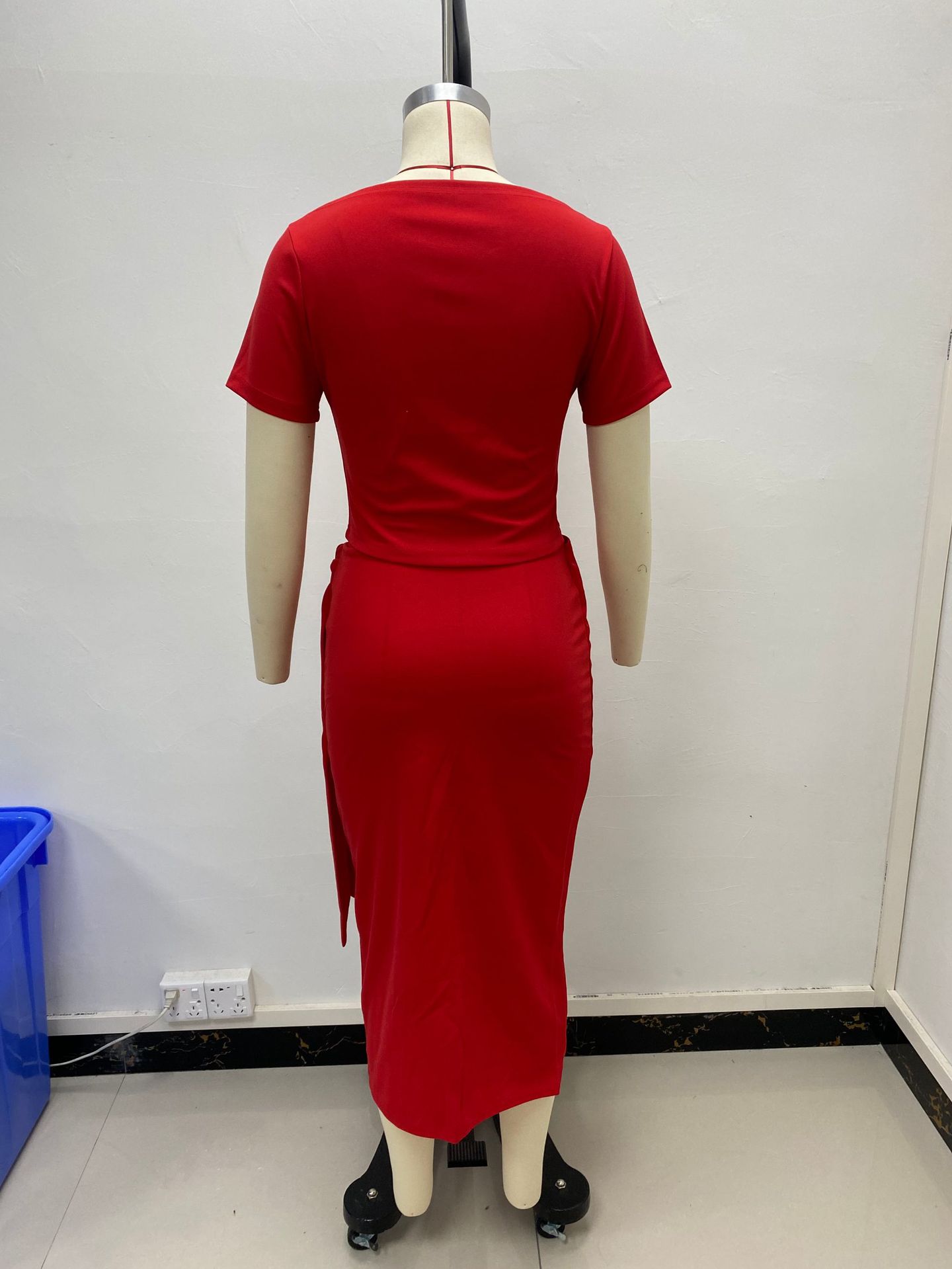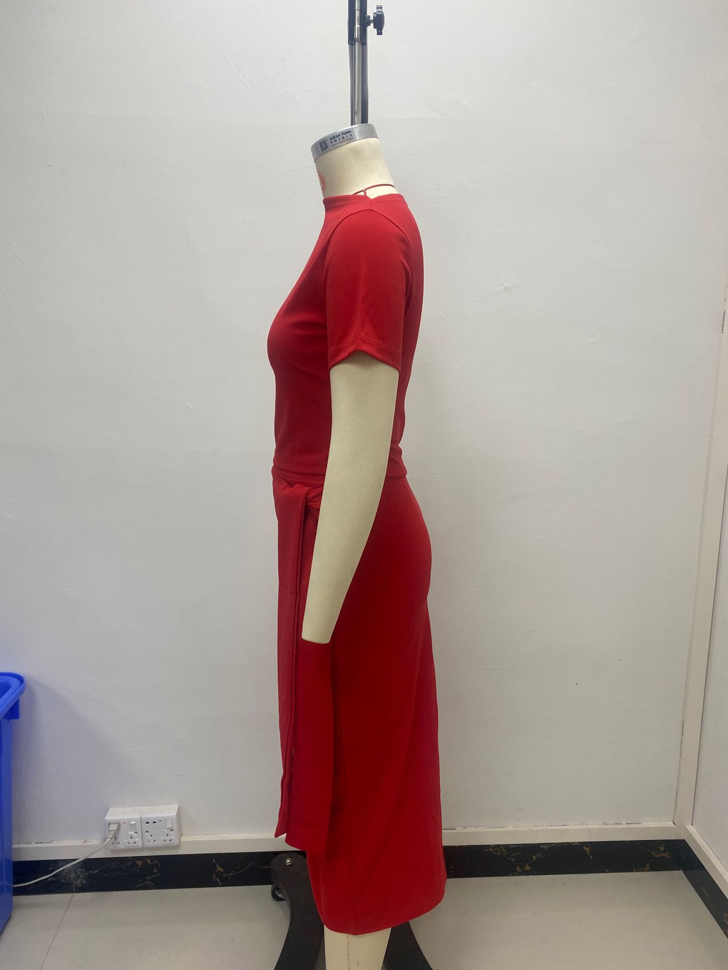 GH99151 재고 아마존 유럽과 미국 여성 의류 봄과 여름 캐주얼 오프 숄더 스플릿 스트랩 세트 원피스 투피스 세트