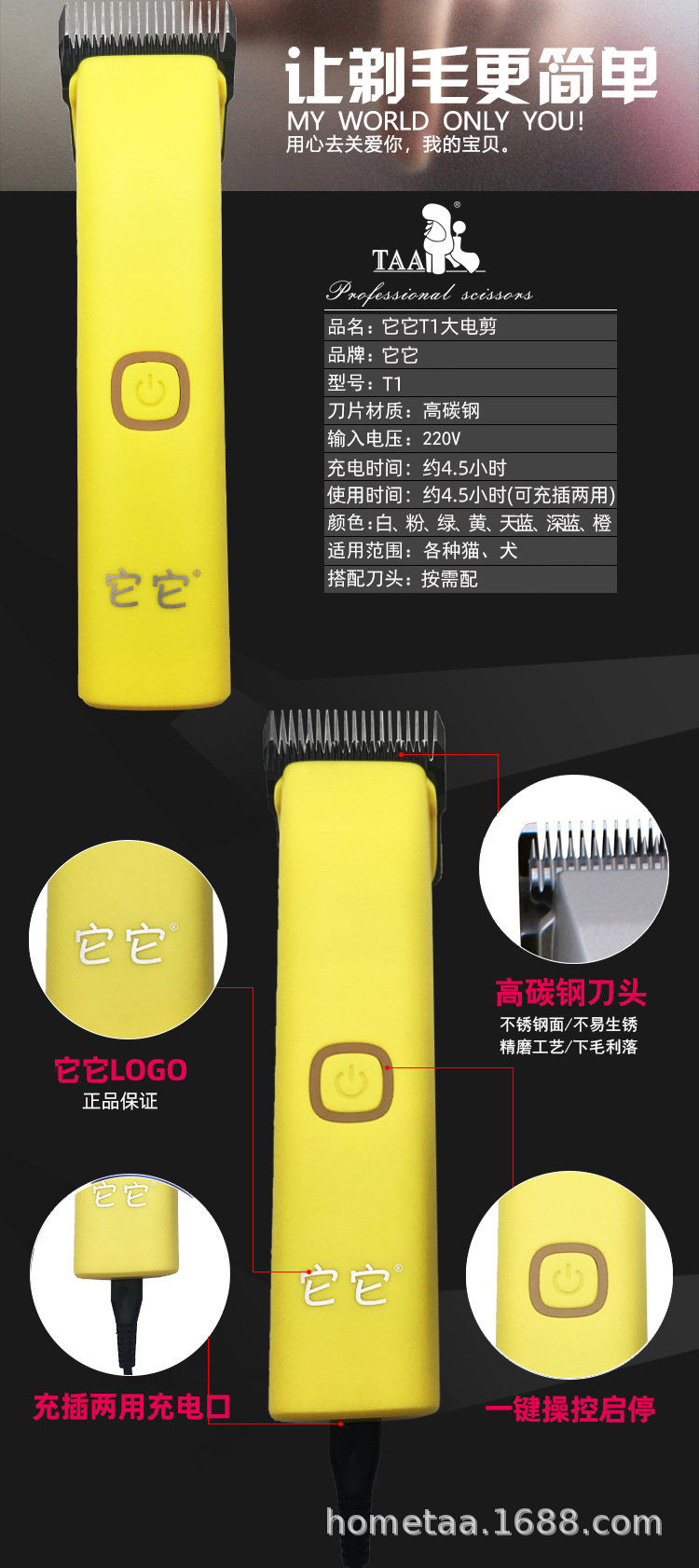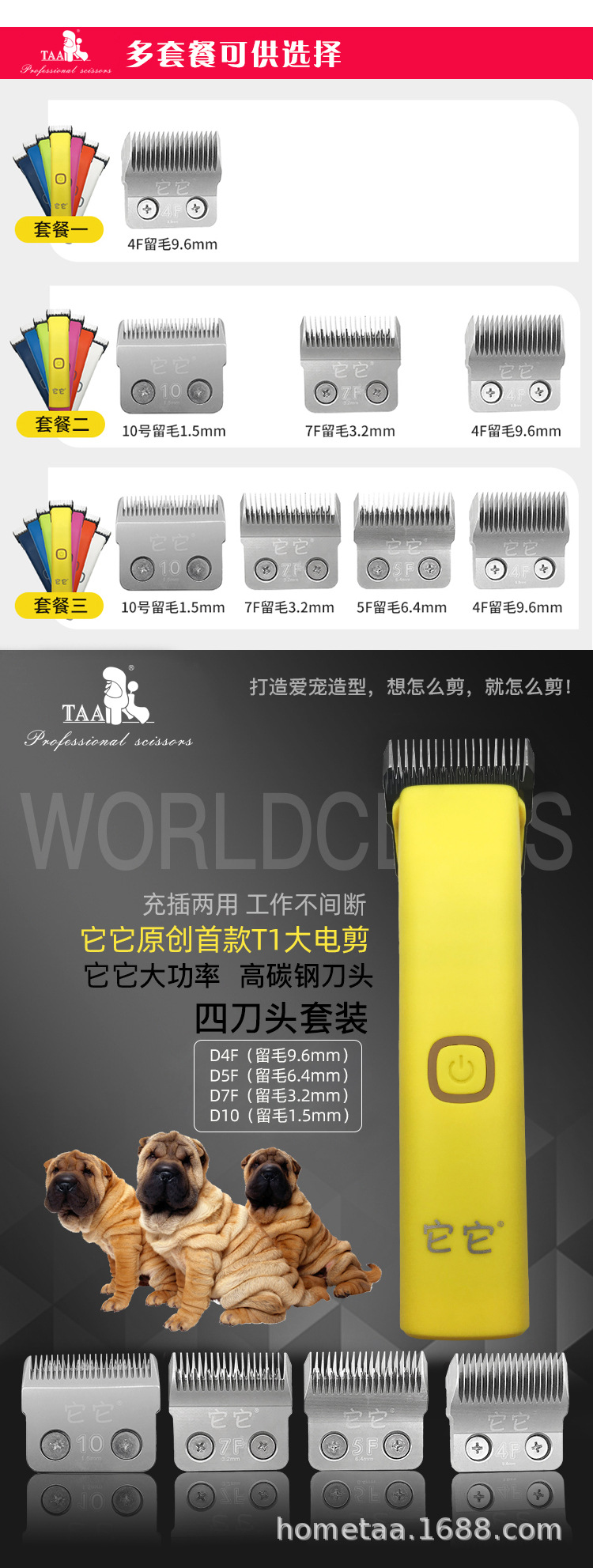 TAA it T1 펫 프로페셔널 전기클리퍼 도그 고출력 면도기 고양이 테디 골든 리트리버 전기가위