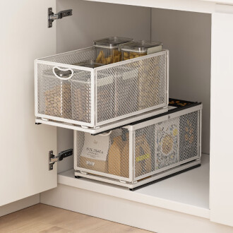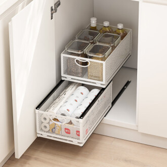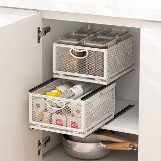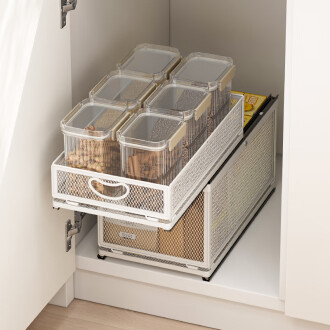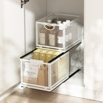 소스 공장 주방 스토리지 랙 캐비닛 내부 서랍 스토리지 랙 다기능 더블 레이어 가정용 푸시 풀 바구니스토어 가기
