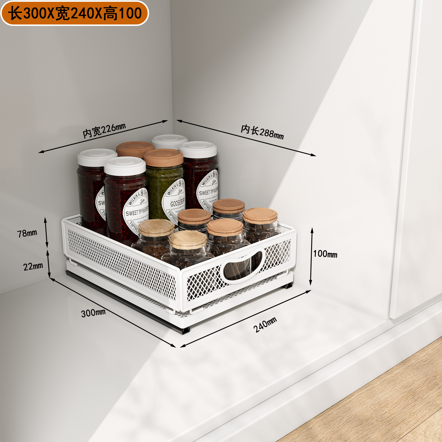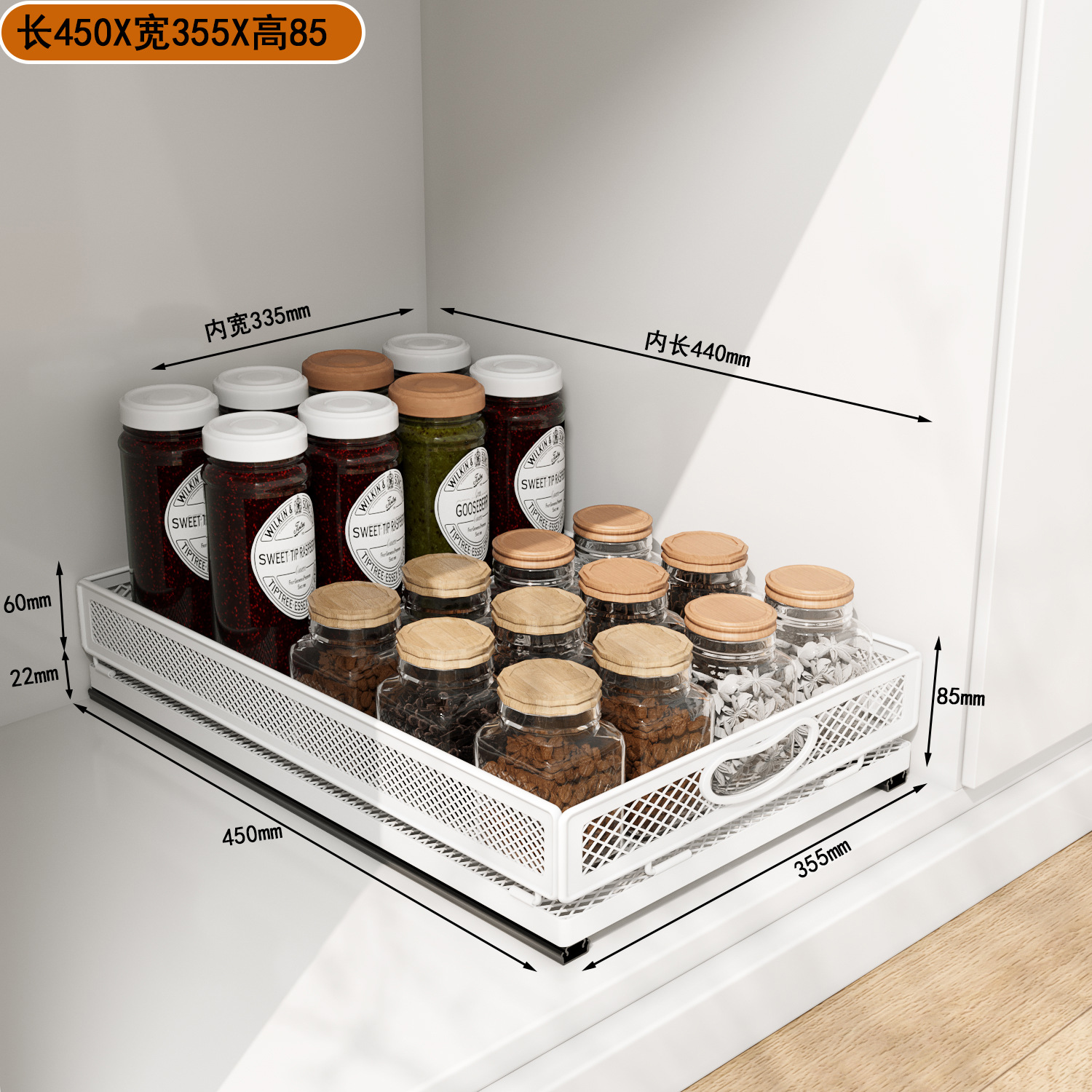 소스 공장 주방 스토리지 랙 캐비닛 내부 서랍 스토리지 랙 다기능 더블 레이어 가정용 푸시 풀 바구니