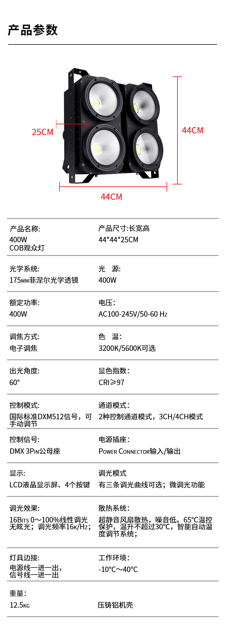 400wcob 따뜻한 흰색 얼굴 라이트 필름 및 텔레비전 조명 웨딩 스테이지 플래시 LED 눈 네 눈 관객 필 라이트스토어 가기